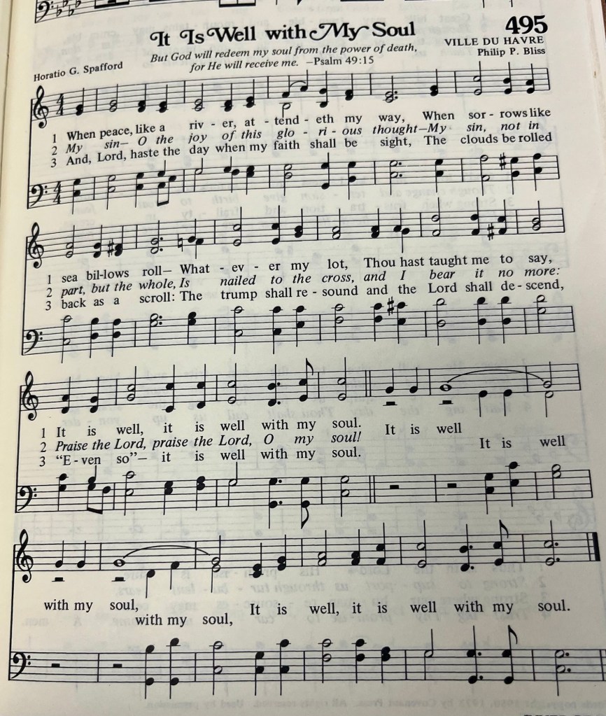 The original manuscript of the Spafford’s hymn has only four verses, but later another verse was added. The music, which was written by Philip Bliss, was named after the ship on which Horatio and Anna’s daughters had died – Ville du Havre.
