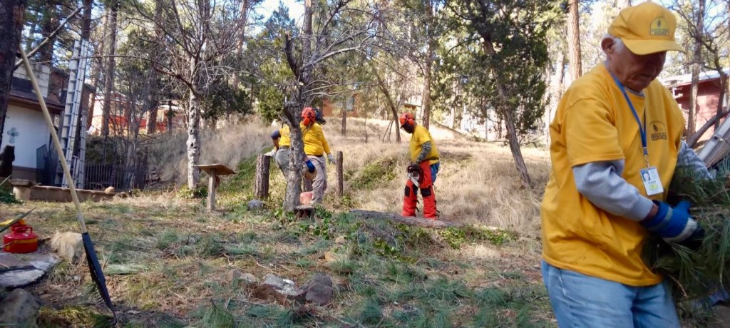 We spent most of the morning working with all of the NMDR teams on this property. Very steep terrain…This is very steep, the photo doesn’t really show it…AZDR Diana catches some air. Tough going at just over 7,000 foot elevation…Our brush piles are easy meals for the many mule deer that live full time in Ruidoso…