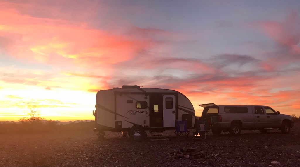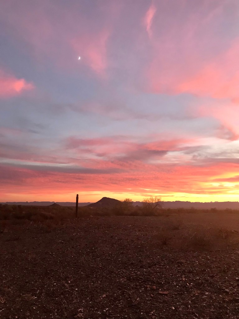 The view from our front door. You can drive right by Vicksburg Arizona, and not know it. We have many times. Located just west of Hope Arizona. Quiet and almost deserted, lots of open sites.