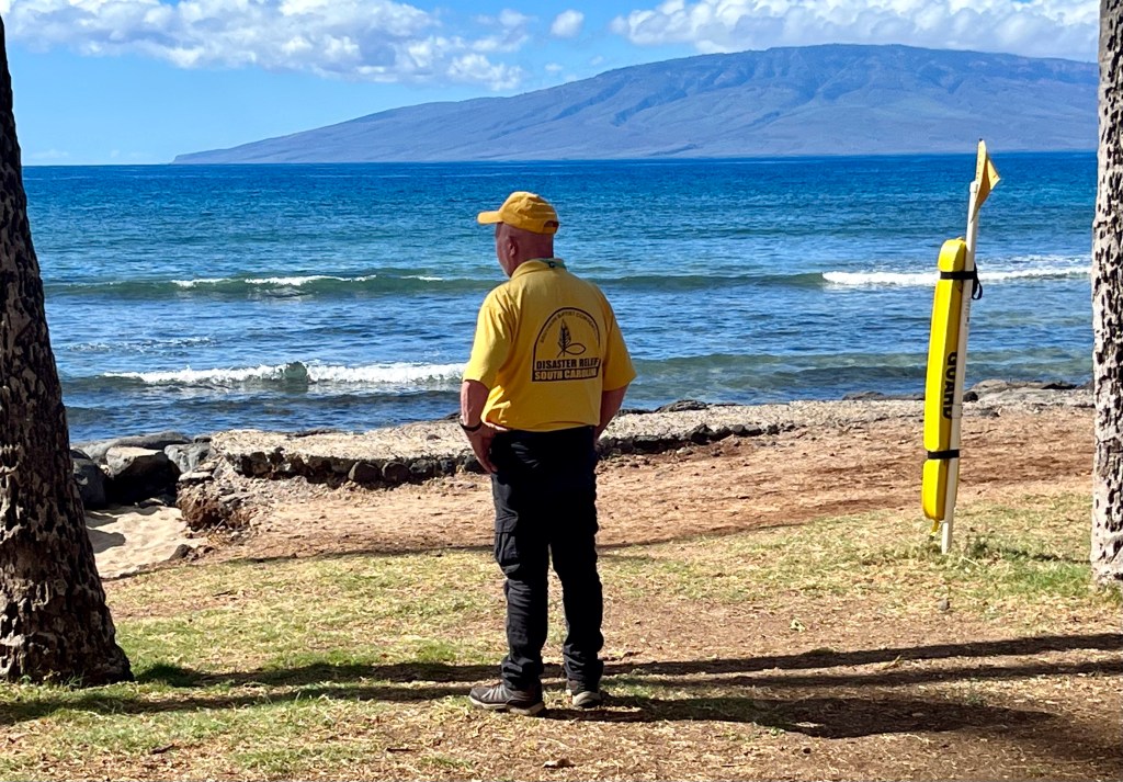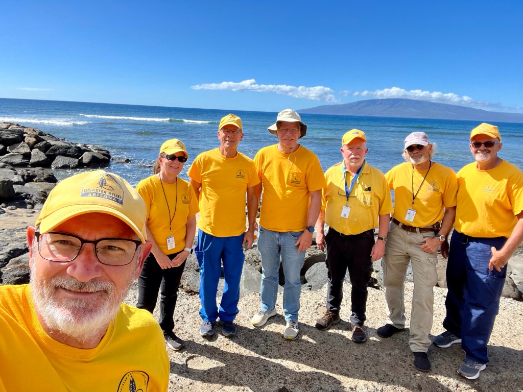 My teammate, Joel, from North Carolina gave the morning devotion today, and as our other teammates commented, he hit it out of the park! Joel’s devotion had to be one of the best I’ve ever heard…On our way to Lahaina this morning, God gave us this spectacular rainbow. A double that reached from sky to sky…I snuck this shot of AZDR teammates, Kent and Janice posing for another camera…Our NC/AZ combination team that has served the Lord so faithfully…We have two AZDR members missing, Norm and Mark are serving on a real NC team. Funny how things work out…Sea turtle watch…