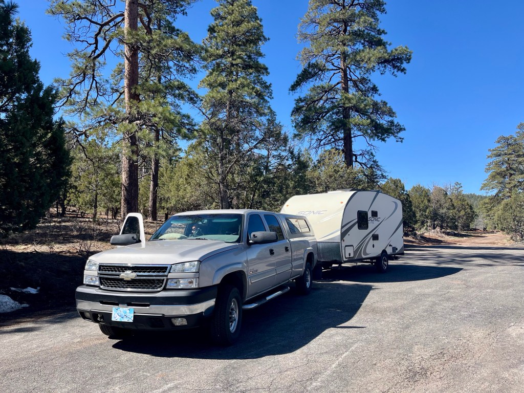 High in the Arizona forrest, we had a great day one …The things you see on I40…We covered 633 miles, way more than we like to. Got a campsite in what has to be the most expensive campground north of Santa Fe New Mexico.