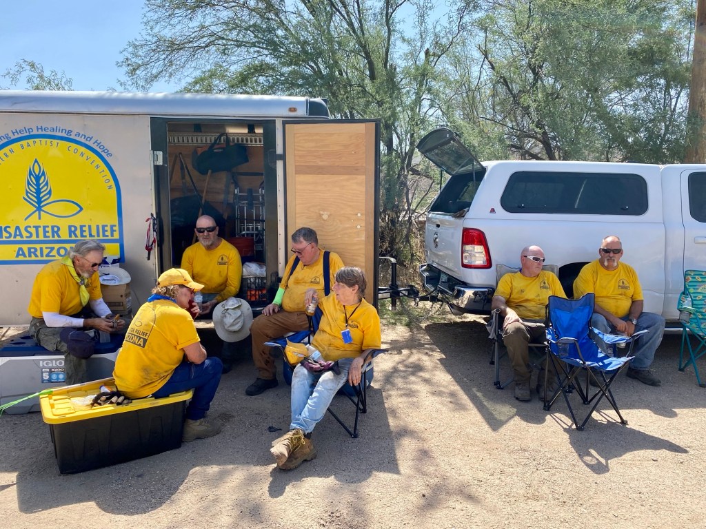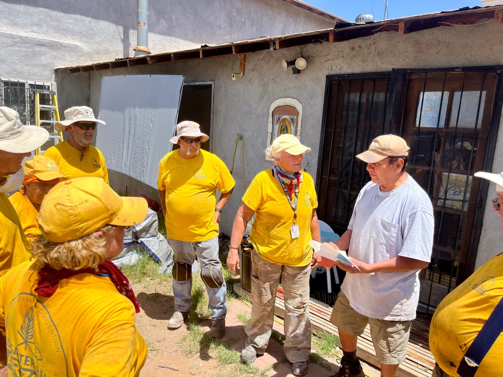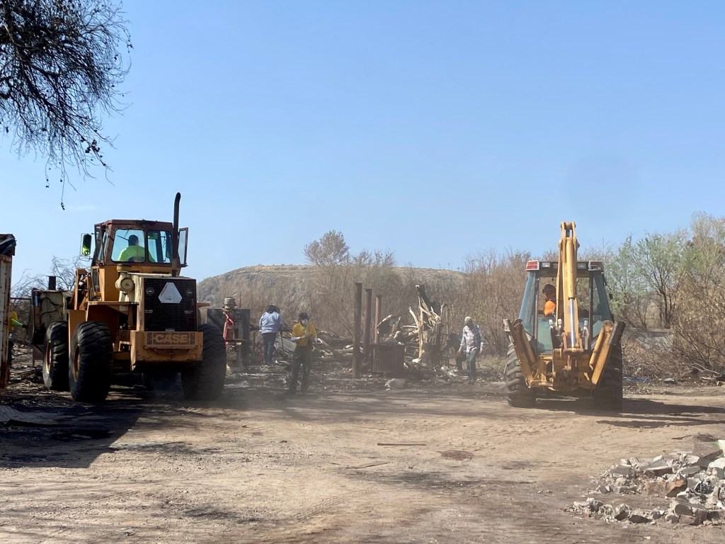 We got a much earlier start to our work day. Fires are still burning on the San Carlos reservation in uninhabited areas to the north…We are very grateful for the help of heavy equipment from the Tribal Council…Our team is always strategizing…A dusty environment…The Grandfather built this house and placed the names of his grandchildren on the outside walls. This is the only name that survived the fire. We could not work on this house, asbestos…On break, we always try to find shade…When we fill a dumpster, we get another. It’s a great system…This home finished, we presented a signed Bible to Mark and Mary…“Do not withhold good from those to whom it is due, When it is in the power of your hand to do so.” Proverbs 3:27 …