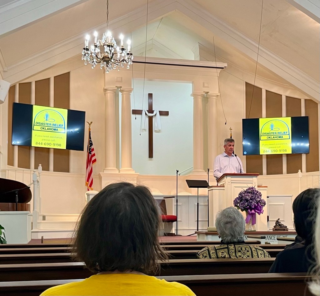 We crossed a lot of bridges today…Just a part of the equipment and supplies here at FBC Morgan City. Teams from Oklahoma, Texas, Arkansas, Missouri and, of course, Team Arizona…Sunday evening service…“When Jesus came into the coasts of Cæsarea Philippi, he asked his disciples, saying, Whom do men say that I the Son of man am? And they said, Some say that thou art John the Baptist: some, Elias; and others, Jeremias, or one of the prophets. He saith unto them, But whom say ye that I am? And Simon Peter answered and said, Thou art the Christ, the Son of the living God.” Matthew 16:13-16 KJV