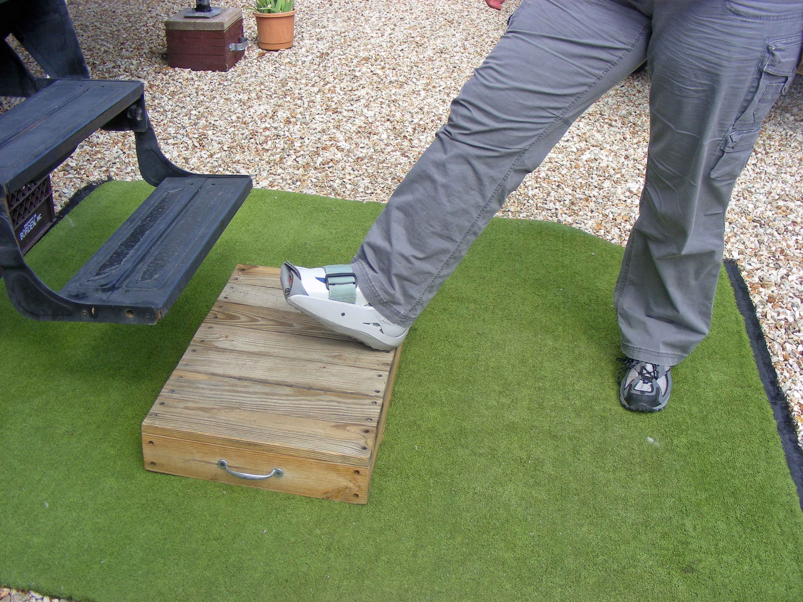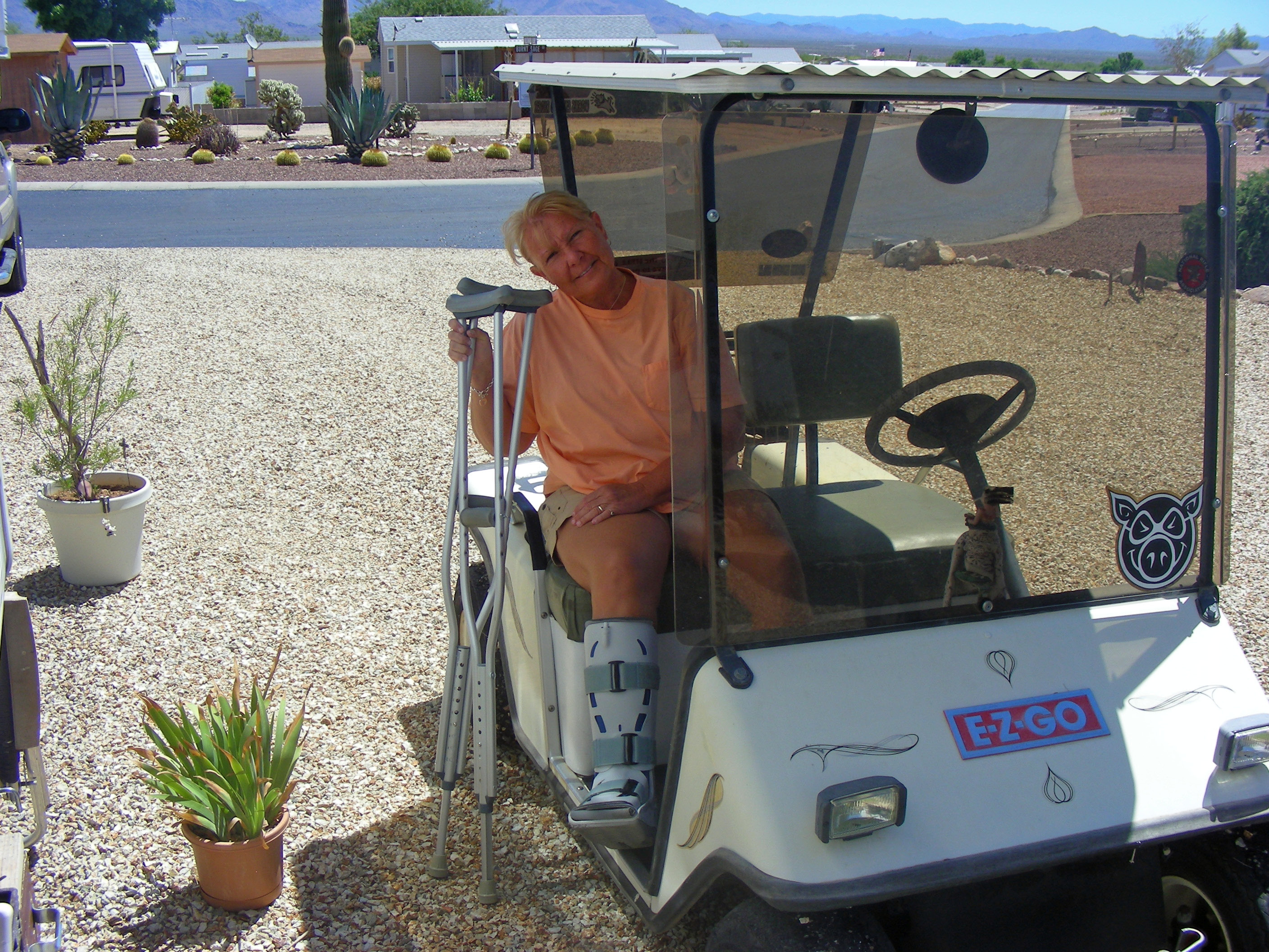 After two times in the past six months of returning to the ‘Star Wars’ boot, telling friends that she was trying to start a new fashion item, the boot is in the shed (more funky than ever) and the strap has returned. The foot Doctor has brought a new treatment to bear on Norm’s tendon, some sort of electro-magnetic pulse weapon that sounds like a jack-hammer at work on her foot. Although it hurt pretty good, Norm says it feels better. Now if she will just follow the directions and lay low until all the pounding therapy is over.