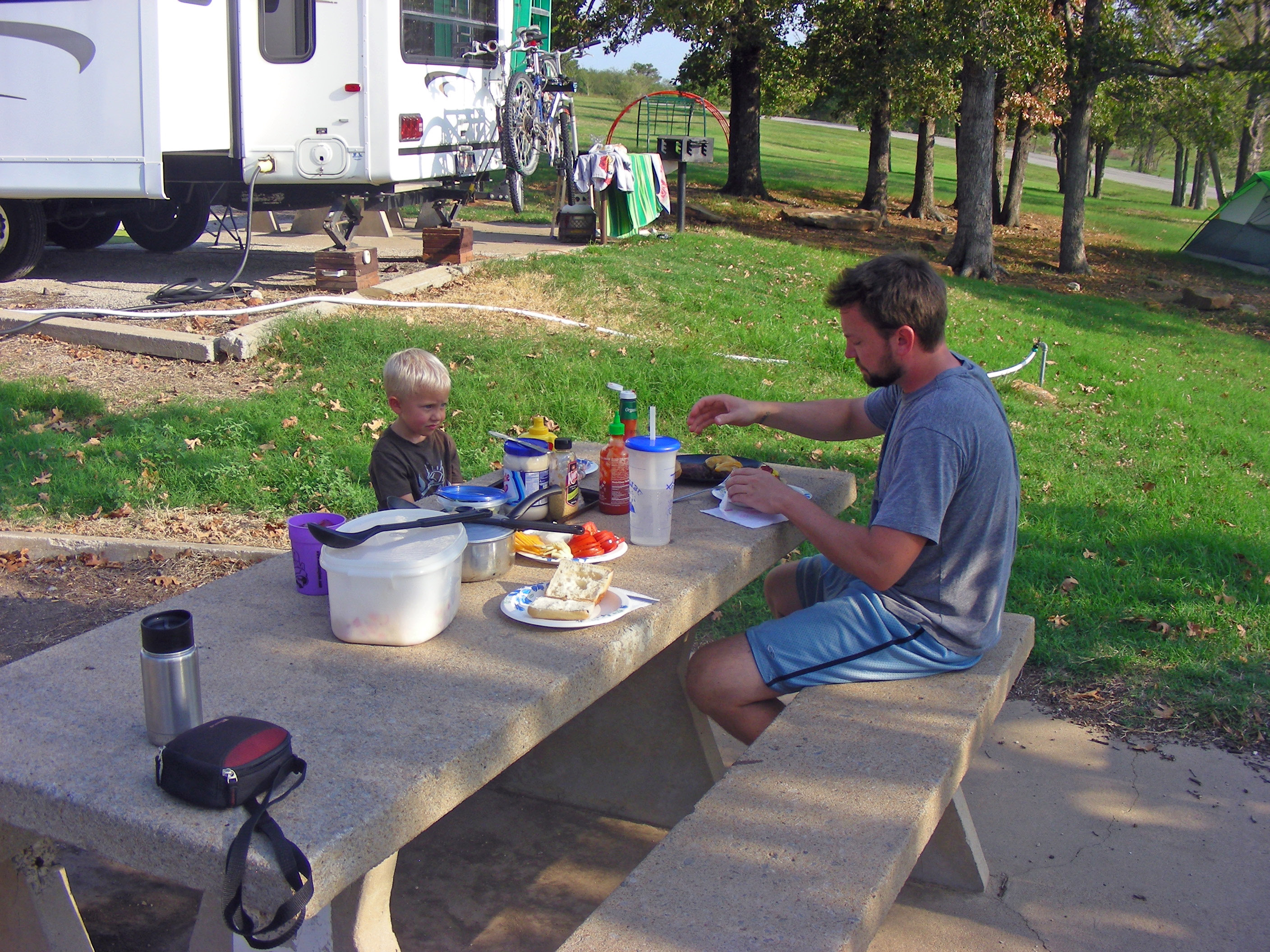 We have a love-hate relationship with Wal-Mart. We like the store, but getting in and out in a timely manner, is most of the time, not possible. Without fail, check out lanes are scarce. Those same stores in small towns are no lines, no waiting. Although we have never spent the night in a Wal-Mart parking lot, we have eaten lunch or dinner while hanging out there. We are glad that Wal-Mart allows this because you never know. As we pass Sam Walton stores, we always get a chuckle looking at the variety of travel trailers, fifth wheels and motor-homes that do spend the night. There are always high dollar units parked for the night, slides out, satellite dish’s, generators humming, one fella was even washing his rig right there in the parking lot. Wal-Mart, an RVer’s kind of store. Thanks Sam.