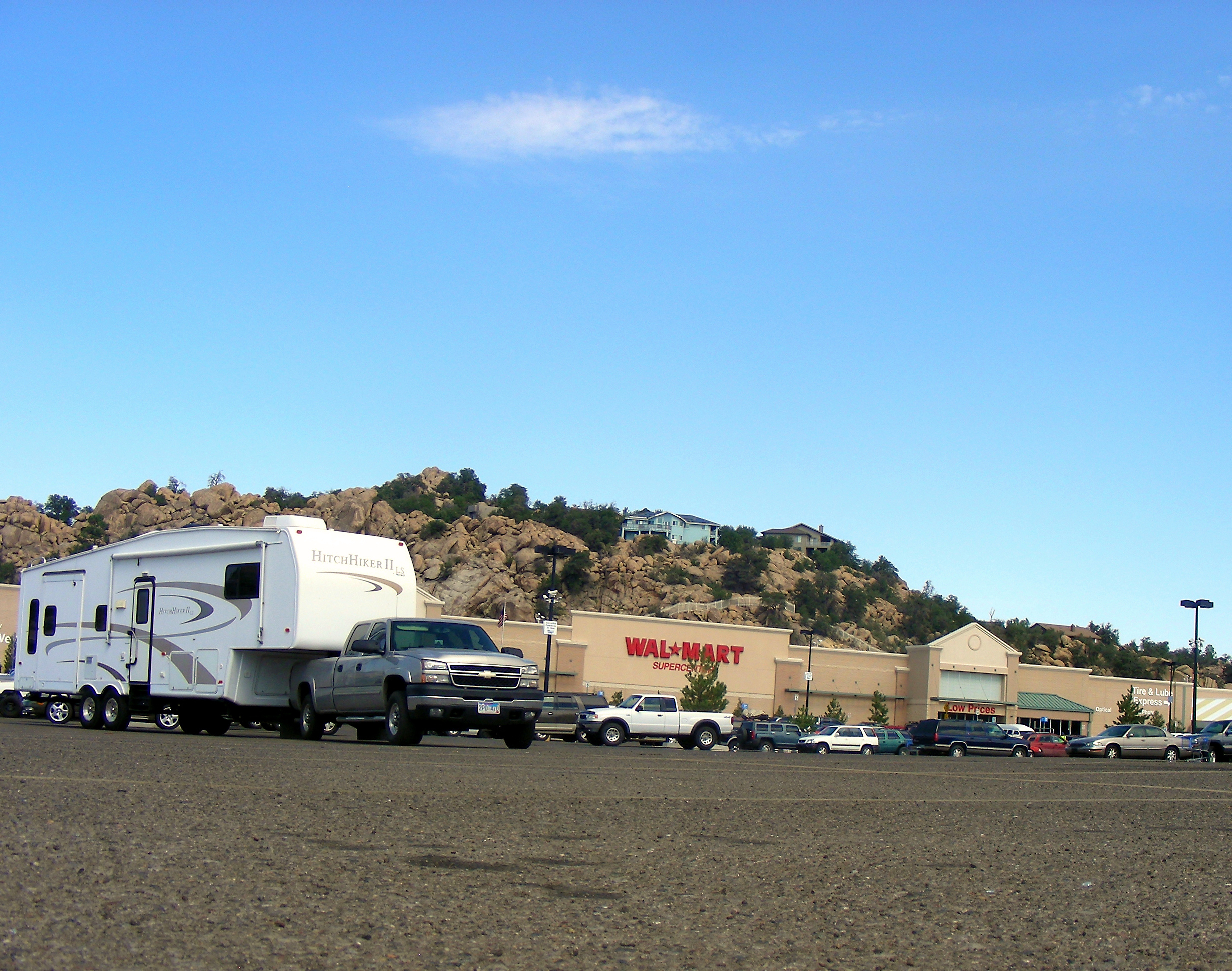 An RV in a Wal-Mart parking lot…