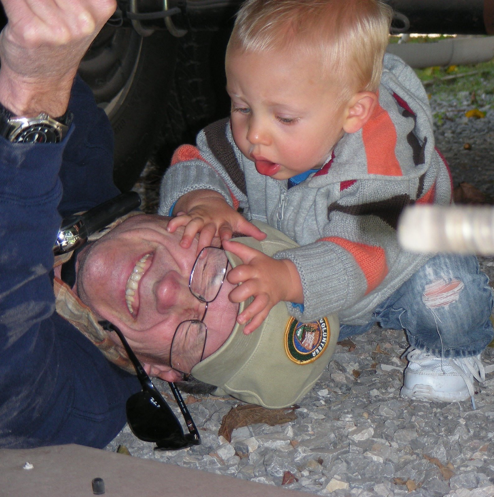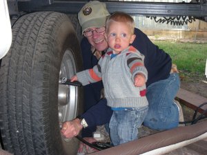 Norm told me Leo was looking for the valve cap off our trailer spare tire that I was on the ground filling. I said “He won’t find it in my ear!”