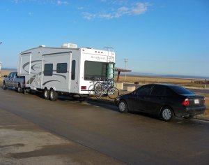 We were both bummed and excited about finally getting back on the road after our extended stay in Oklahoma. We sure miss our grandson, who by the way, wanted to come with us, but both his parents are real “sticks in the mud” types and said no. I know, what was wrong with those two! We (me), not towing for almost a year, were concerned that we (me) had forgotten all the rules and common sense items that are full time rving. The first thing we did before leaving Oklahoma City, we had the truck and trailer weighed and I was surprised to learn we are almost 1200 pounds under weight. The mileage for our first day was very short, stopping in Amarillo, Texas and got hooked up just prior to a steady down fall of rain. It seems, no matter where we travel in our RV, we see someone do something that makes you get a funny look on your face and think “what the heck.” Another couple, that were disconnecting and getting ready to get back on the road, did the unthinkable. While the guy was working on the getting hooked up for the road, the gal had their sewer hose at the fresh water supply in the next site, rinsing it out with the drinking water spigot! Gross! If you don’t carry a spray bottle with bleach water in it, get one. Wow!
