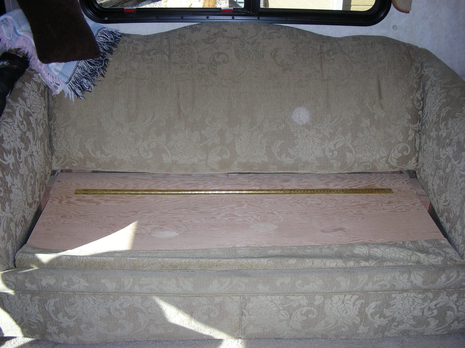 Our home improvement projects got off to a great start by chucking the inside of our sofa sleeper. I had several ideas floating around in my head on how to proceed