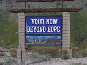 On the way to and from Quartzsite we pass through Hope. It looks more like an intersection with a gas station, but it might be more. I don’t want to offend anyone from Hope that might read this. The first sign you see when entering the town and the second one is on your way out of town. I hope that is not true of any of us.