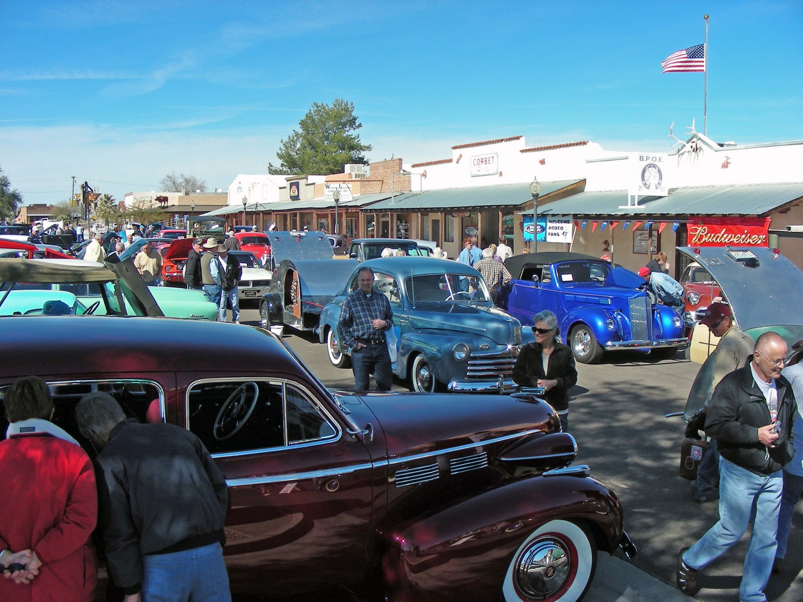 This is a nice look at most of the show. Cars lined up on both sides and down the middle of the street.