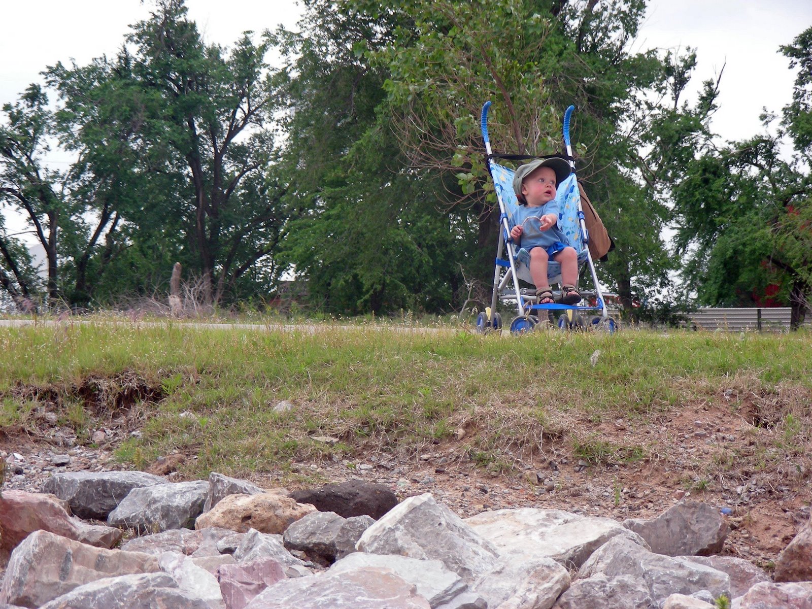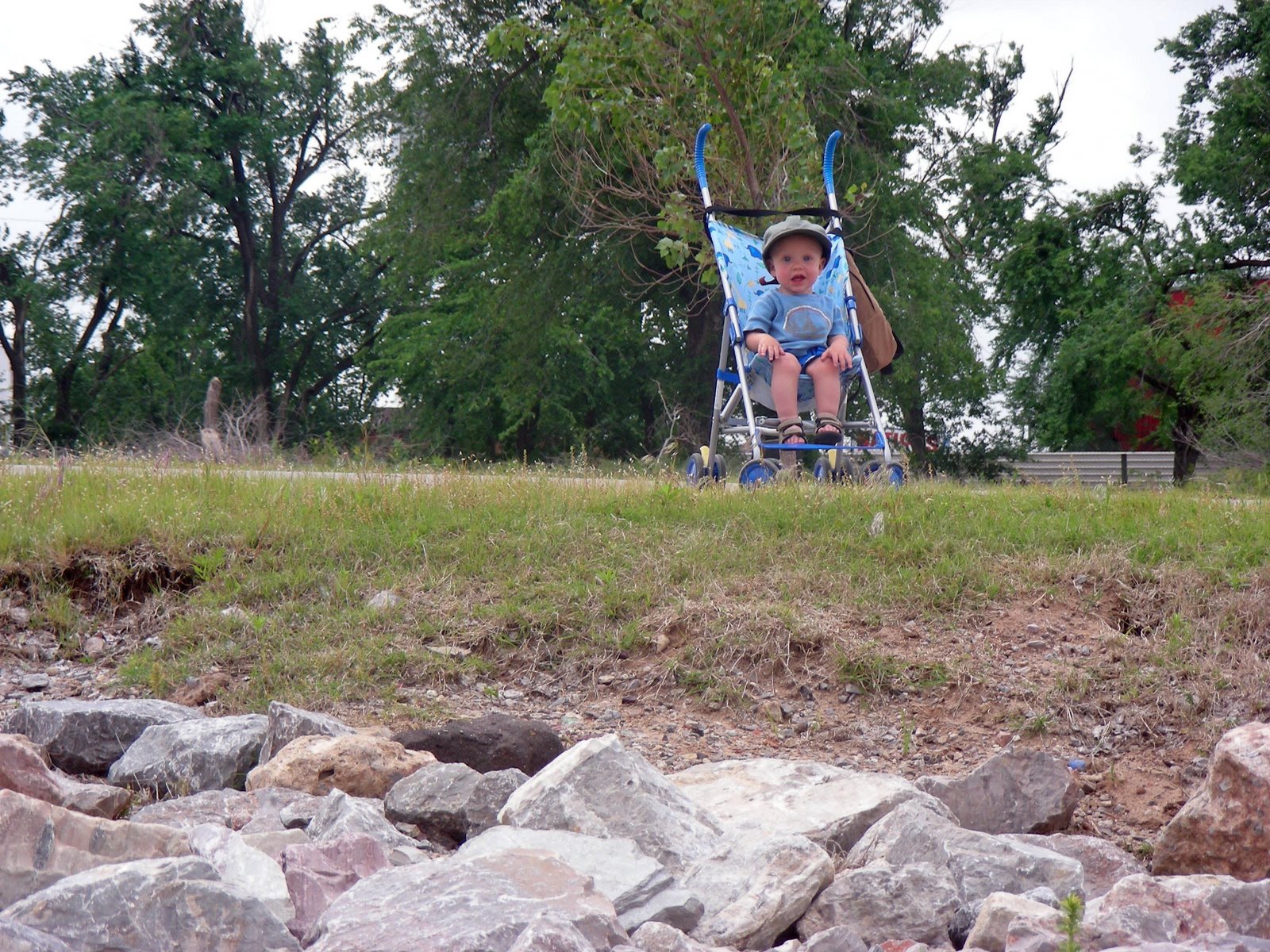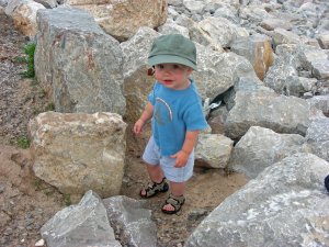 I think he is telling his Gammy to tell his Pappy to get out of those rocks.