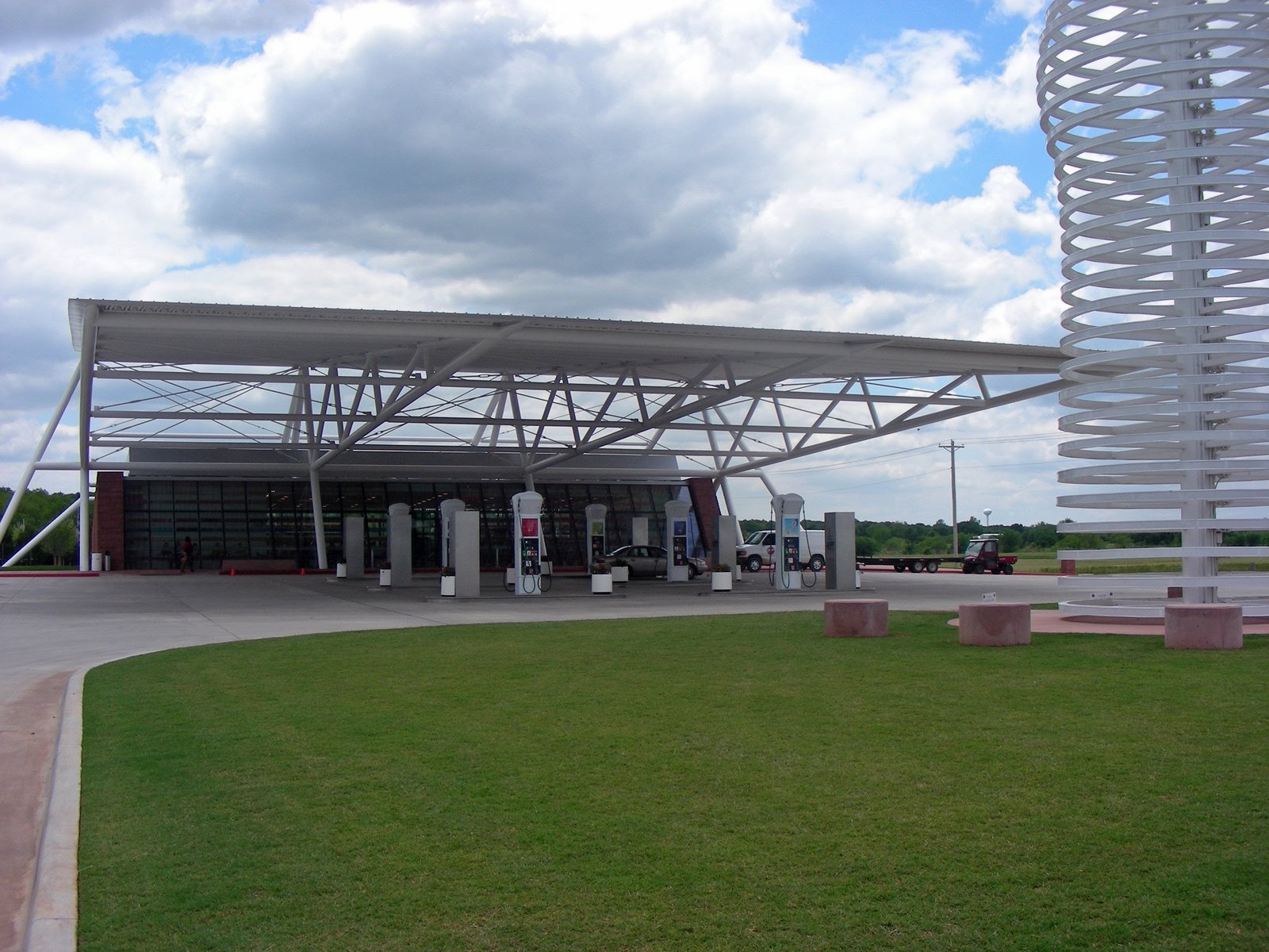This roof structure is huge and mostly free standing. I wondered how well it would hold up in a storm. They sell gas and diesel fuel for a fair price.