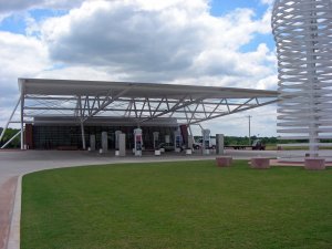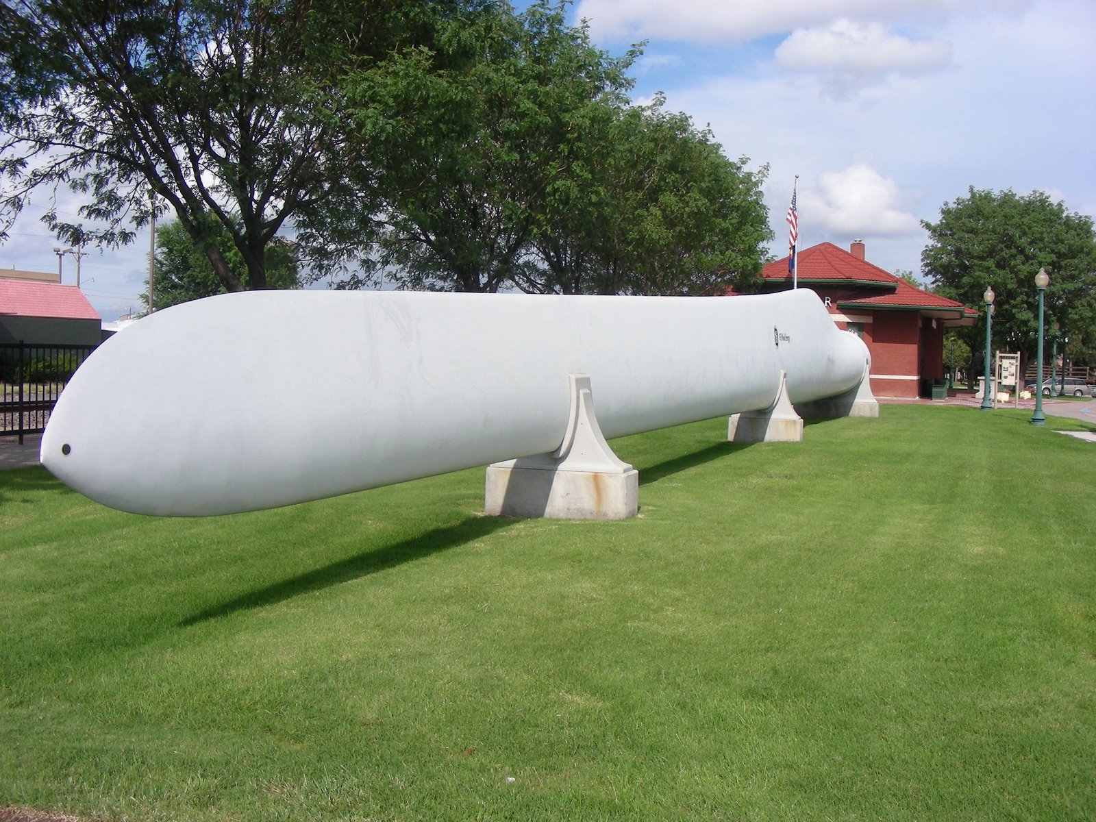 If you have ever seen the wind power everyone is talking about, this is just one of the three blades that go around. It is located at the Colorado visitor center in La Junta. Very friendly folks, will give you anything you would ever need to know about Colorado.