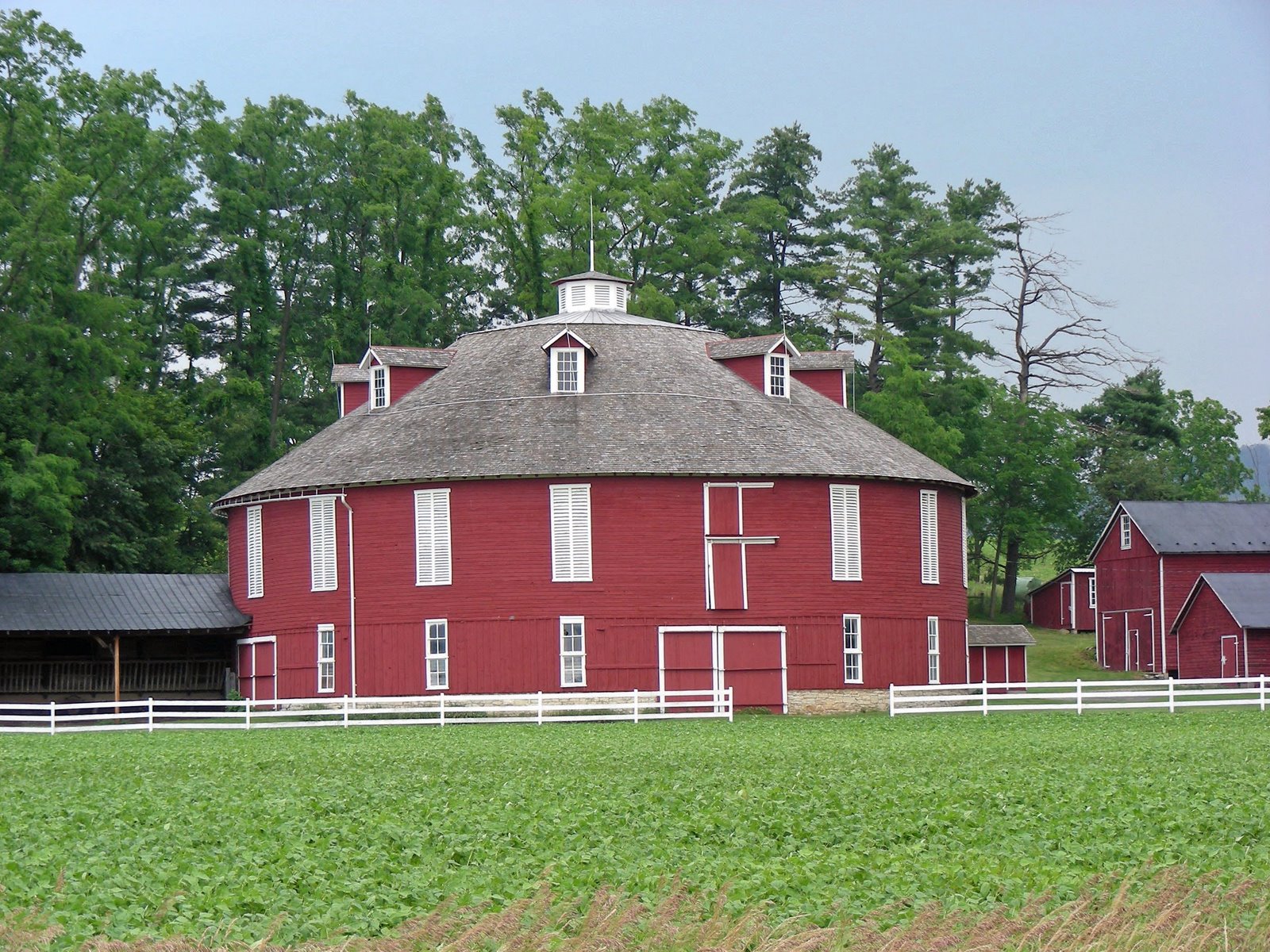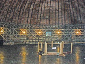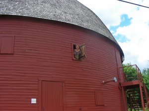 When we travelled on route 66 in Oklahoma we found a round barn that was open to visit. This round barn is, I think, still in service. It is along route 45 near Centre Hall Pennsylvania.