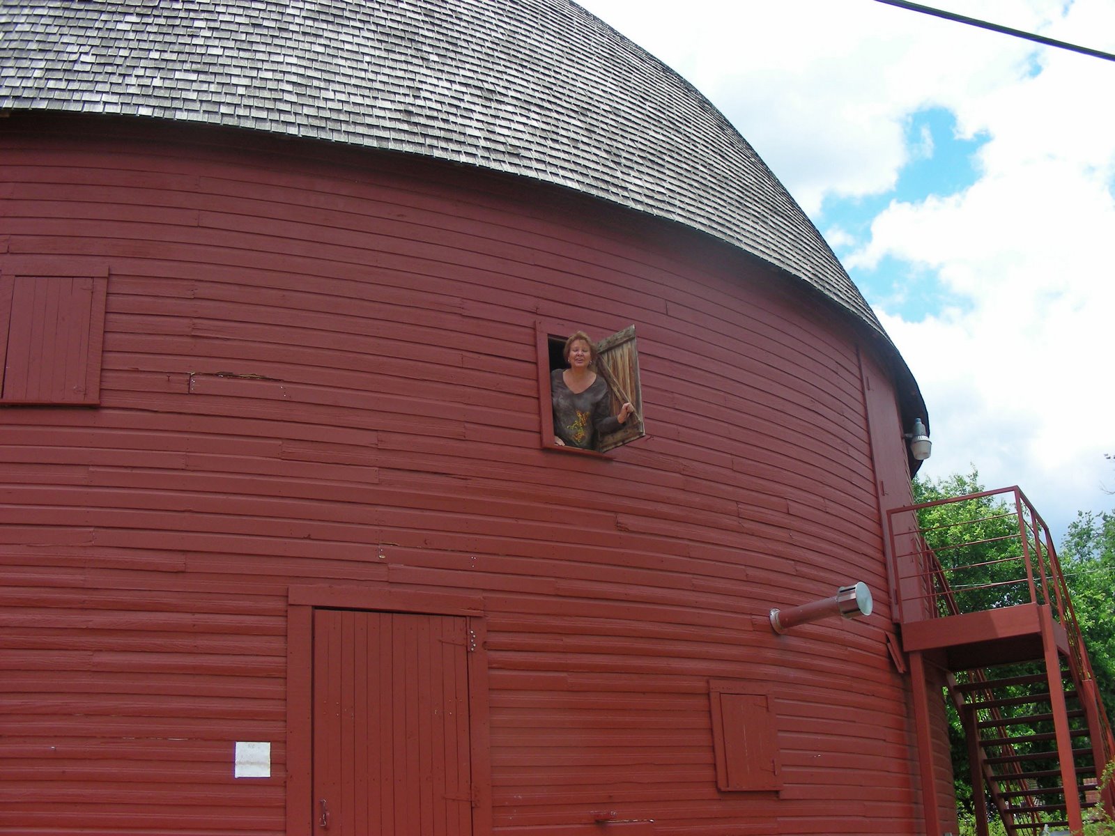 We drove east on route 66 and visited this big round barn and I realized this is about the only photo I took of the barn. Norm is checking the view from the second floor.