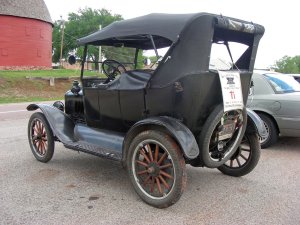 This old Ford Model A or T, I don’t know was a part of a group of old cars going to California on route 66. The wheel spokes are made out of wood and the head lights had a lavender color to them.