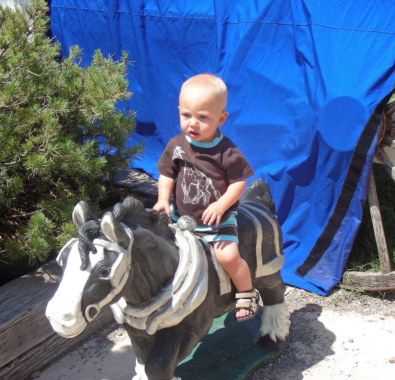 Leo kept calling this little horse a dog, but would not go near him, even though he let us rub his nose.