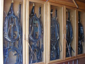 Inside the barn were lots of equipment displayed and some antique desks and chairs.