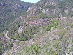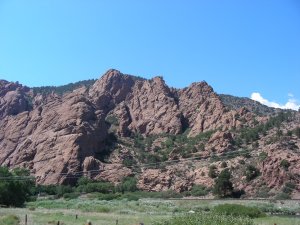 Some of these views are from the drive to the north rim by way of back tracking on highway 50 east bound, and than turning north on to highway 92. Highway 92 is a great drive with the maximum speed being around thirty miles per hour. Lot’s of twists and turns. Norm had to take some motion sickness pills for the first time. She just can’t sit and look straight ahead on a road like this one. Way to many awesome views. We drove past the turn to the north rim for a trip into Crawford Colorado for some supplies. Crawford is a real nice little town, but sadly, not for supplies. We headed back toward the road to the north rim with only a bag of ice. We could not find any type of food other than packaged stuff. Another eleven miles down the road for a real grocery store. We decided that the food we had left would have to do.