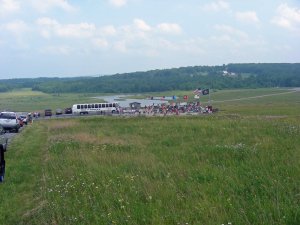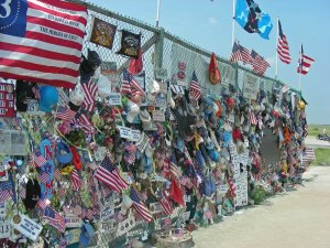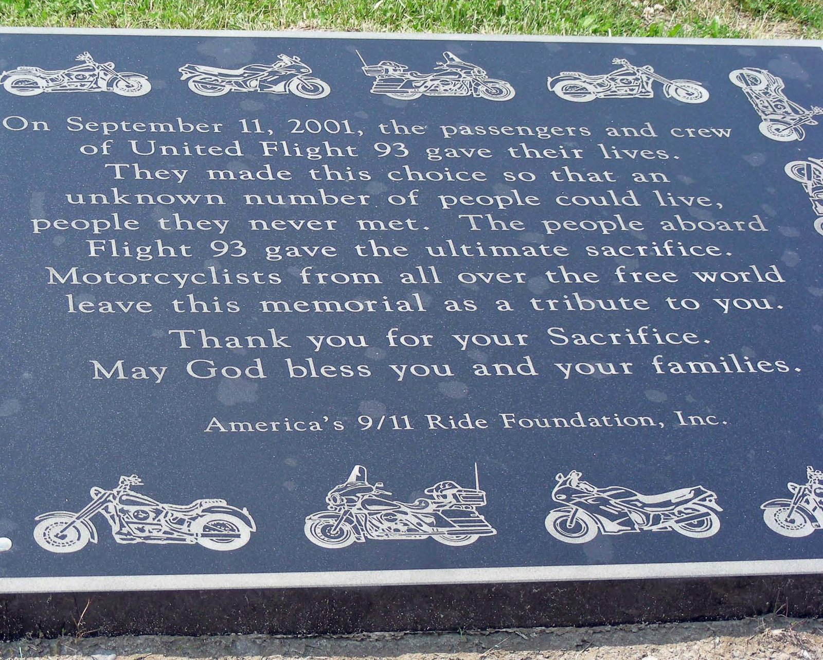 This the view of the temporary memorial from our parking spot along the road. To the left of this area is another parking lot with port-a-potties, but it was full of motorcycles.