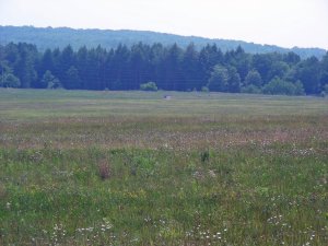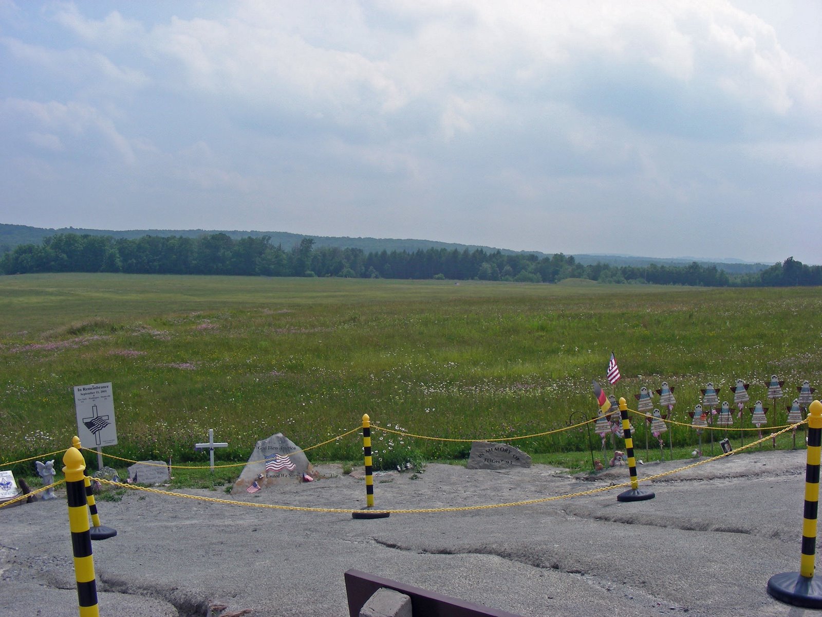 Hard to see, but an American flag is in the upper center, and to the left of the flag and close to the tree line is the site of the actual crash.