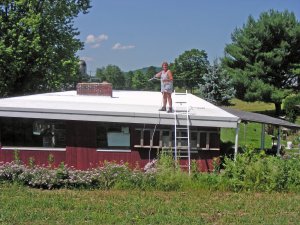 That is Norm way over there doing prep work on my Mom’s roof. With Norm leading the charge and telling my step-dad, Bob and I what to do, we got the job done in two days.