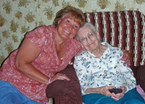 Norm and her Mum-Mum in Centre Hall. She is 91 and as feisty as can be.