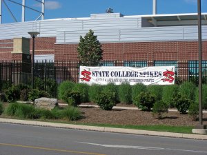 This is not a very good shot of Medlar Field where the State College Spikes, an A-affiliate of the Pittsburgh Pirates play. Their web site, http://www.statecollegespikes.com/ has a wealth of information on the Spikes. “Fear the Dear” is their official logo. I’m afraid there is not much fear of the team as when we attended a game I think the Spikes were five and seventeen or something close to that. We had a great time though, thanks to our good friends, Ken and Dodie, for the great seats and my Mom and step-Dad, we were just to the left of home plate and carried on like we were life long fans. Norm even won a gift certificate for Wegmans, a very cool grocery food store. If, in your travels, you come across one, make sure to stop and shop, you will be glad you did.