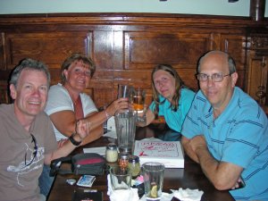 We are at the Highway Pizza joint in State College Pennsylvania with our good friends Steve and Linda. We have been meeting here for years and call it our “regular place.” Our connection goes way back to high school. I think we have been friends since Norm and I started dating way back in 1970. The four of us were even kicked out a few years ago! Steve and Linda and their two daughters spent the night in our bathroom with the four of us in Miami during hurricane Andrew. Four adults, four kids, a dog and two cats rode out the storm in our average sized bathroom. Always a good time with these two.