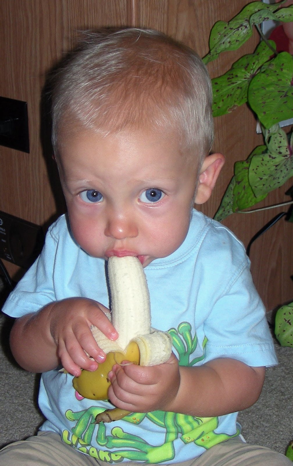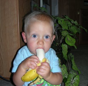 This is Barron. He is caught here doing one his two favorite activities. His other is screaming and making all sorts of chatter. He does say “Hi Barron” about a hundred times a day.
