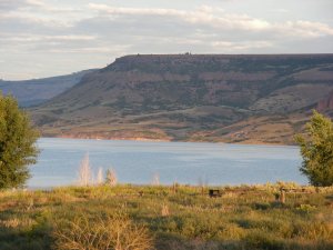 The Blue Mesa reservoir at first light. A boat was already out on the water trying their luck.