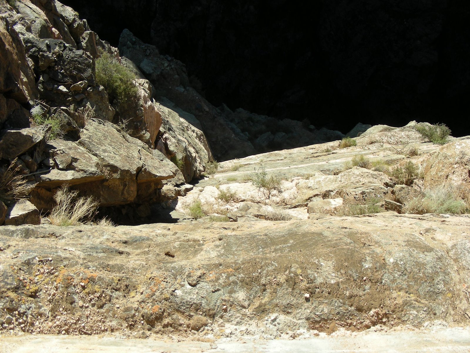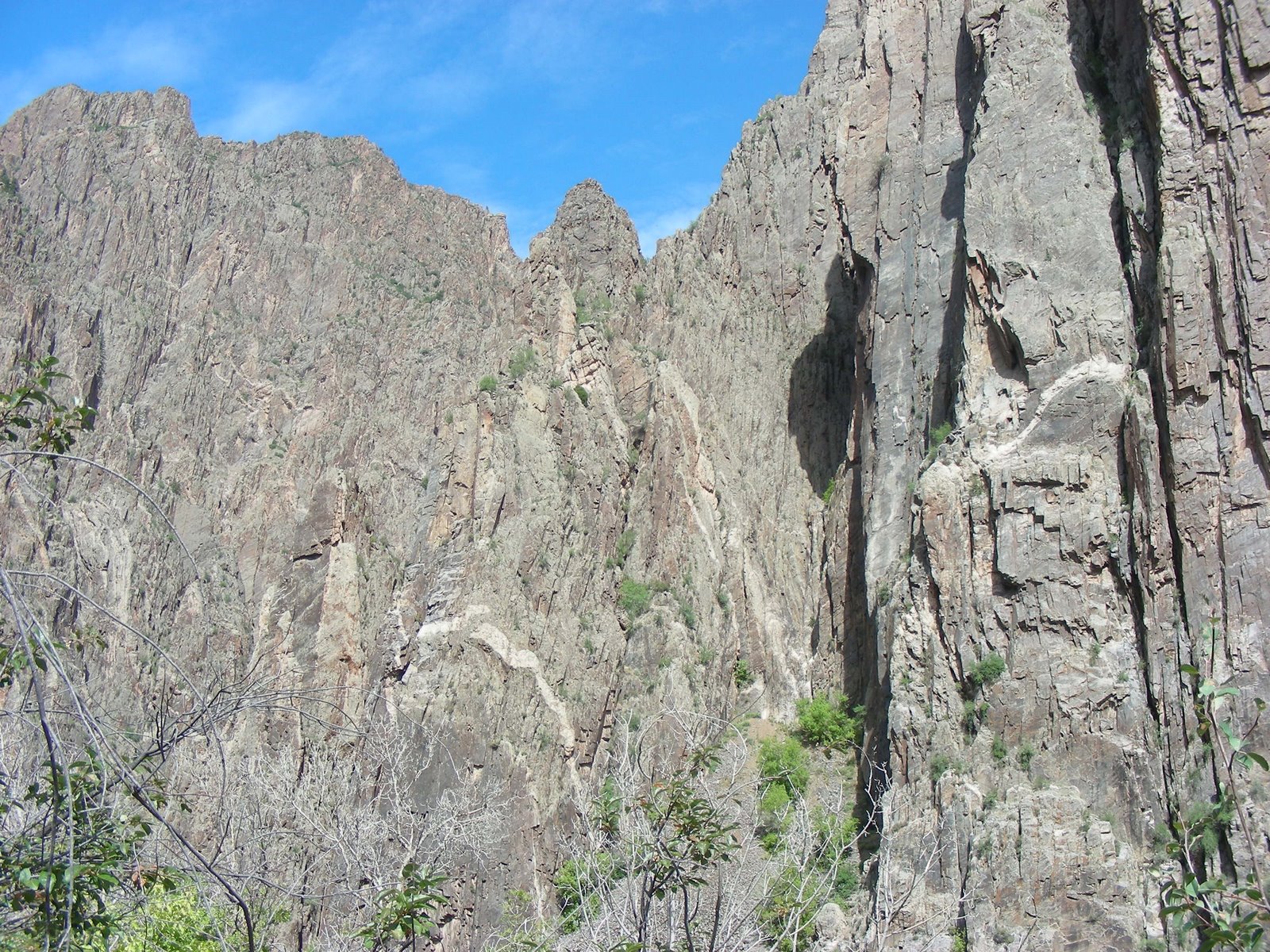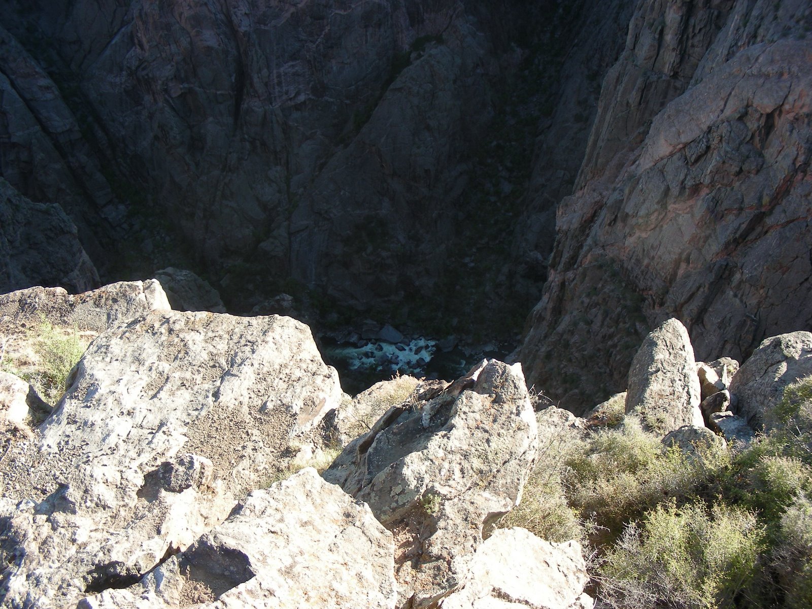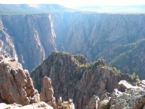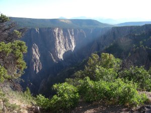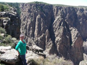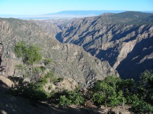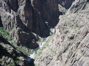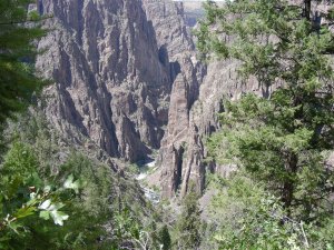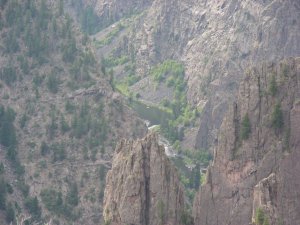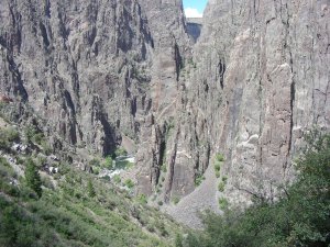 The photograph above was taken from the first pull over, Tomichi Point, just past the campground. This quote really sums up what it is like here, “Some are longer, some are deeper, some are narrower, and a few have walls as steep,” writes geologist Wallace Hansen. “But no other canyon in North America combines the depth, narrowness, sheerness and somber countenance of the Black Canyon of the Gunnison.”
