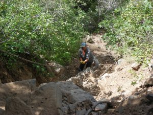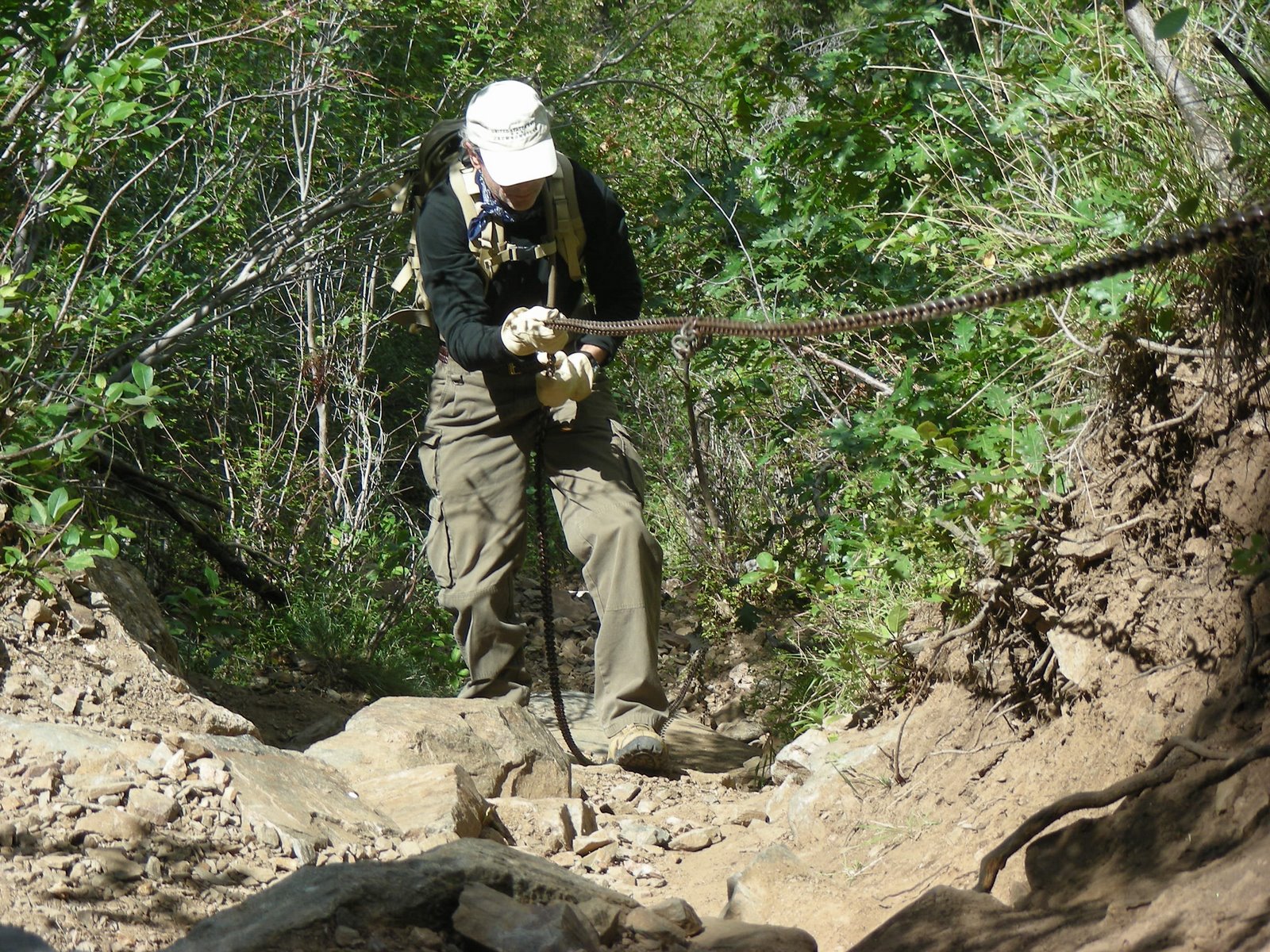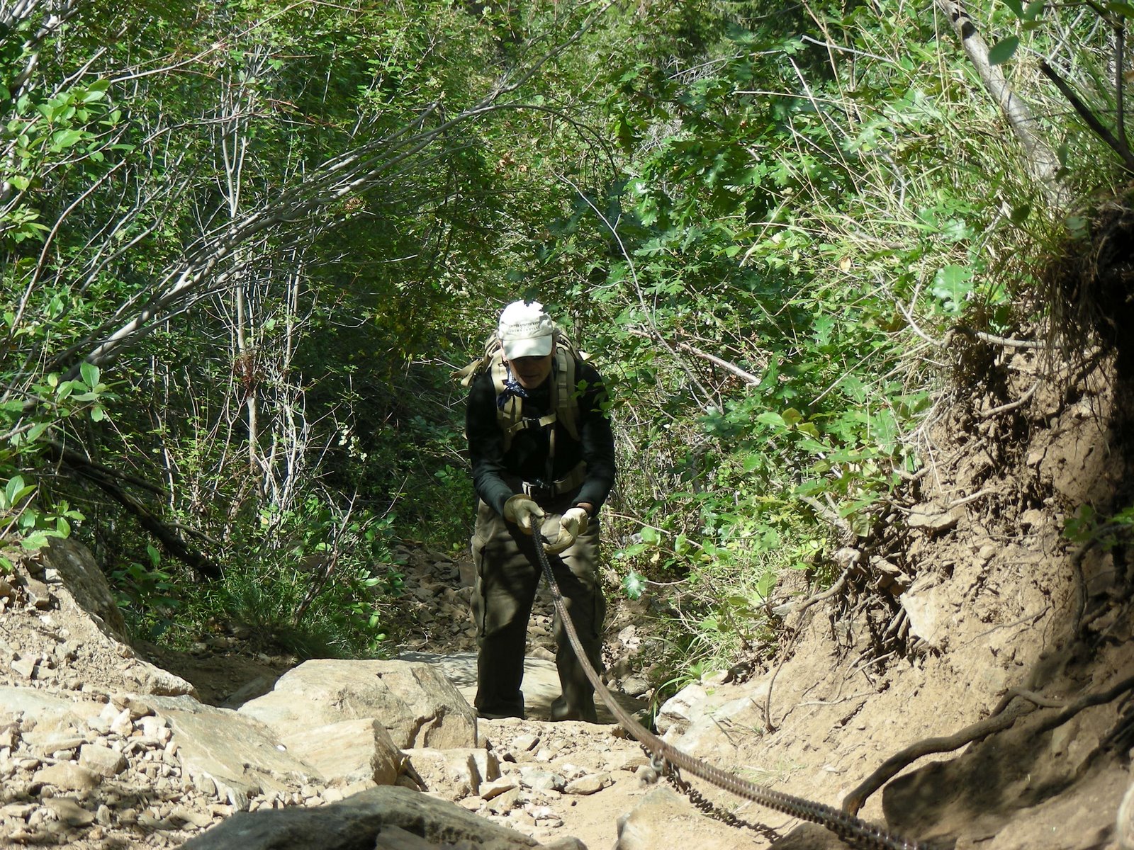 Okay, here we are climbing back up the 80 ft. chain. Dave is making it look like a piece of cake.