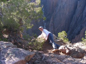 We had this whole section of the camp ground to ourselves. The Blue Mesa reseivior is off to the left, with the sun setting on it. This is in the Curecanti National Recreation Area. Lots of camp sites all along the highway and marinas too. We hit the rack early for our assault on the Black Canyon of the Gunnision on day three.