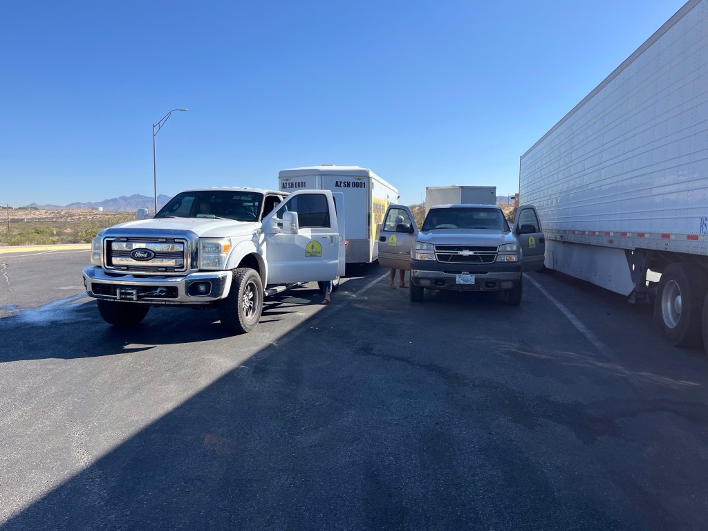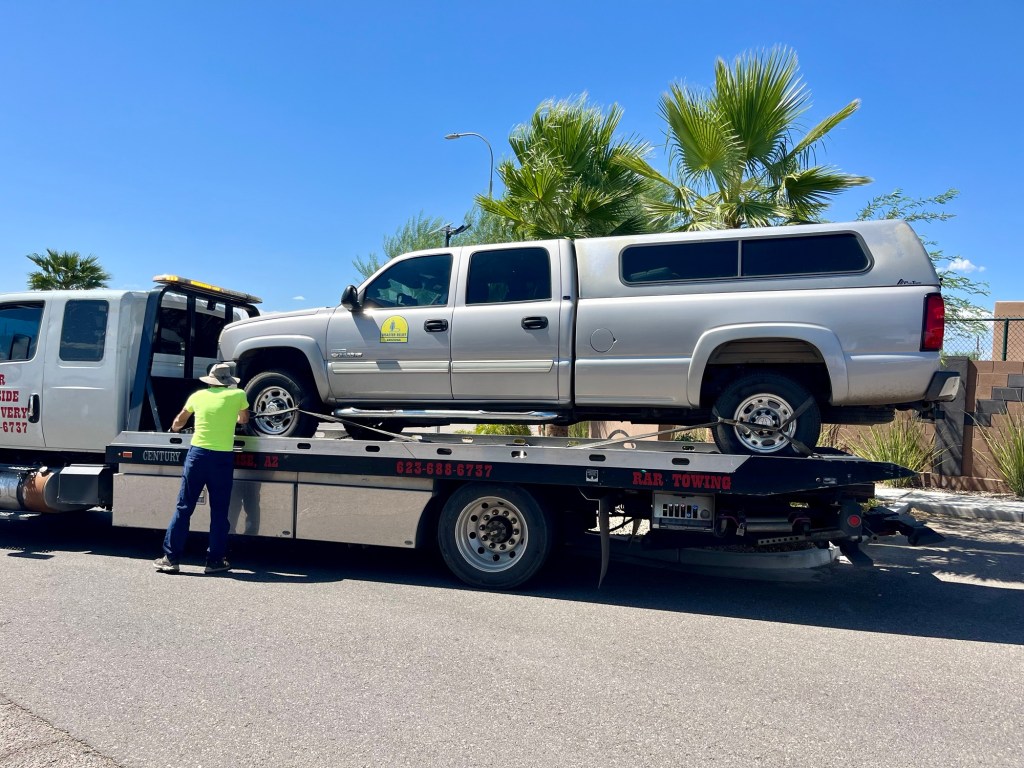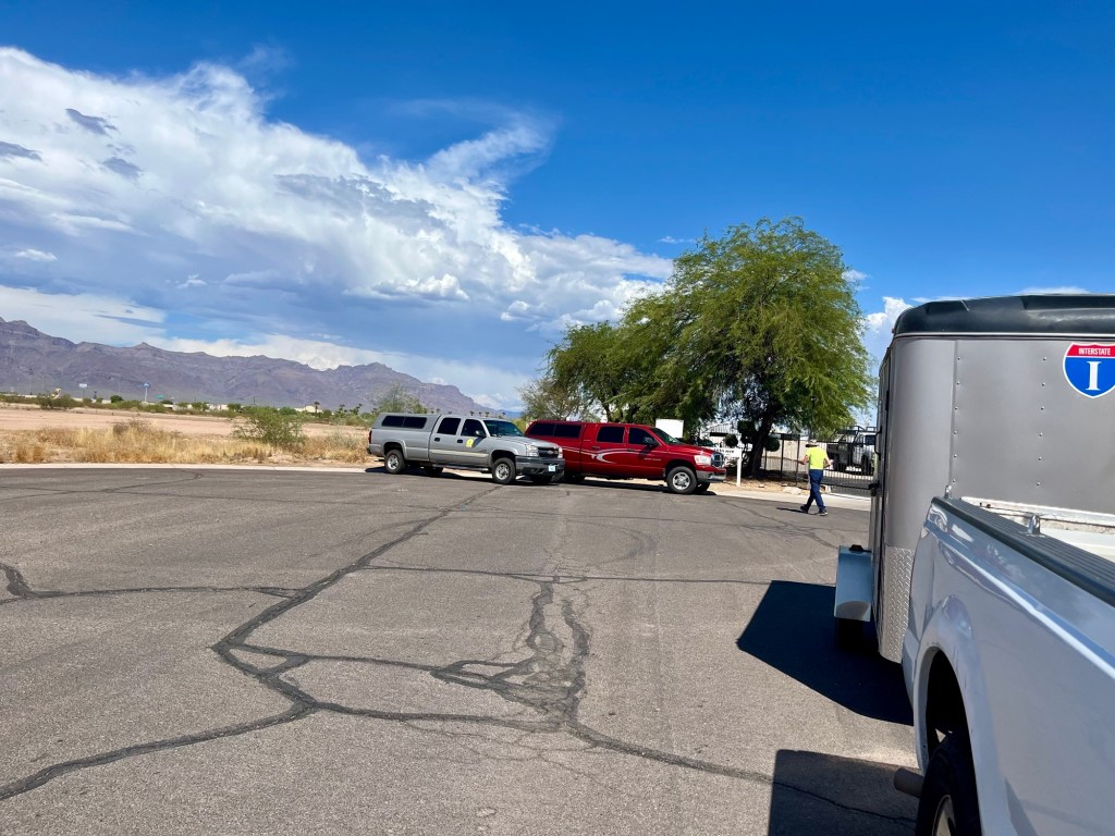 One hot afternoon in Apache Junction Arizona. We left our truck outside their gate as AZDR Bryce came to our rescue. He hauled us and the Recovery unit to Globe.