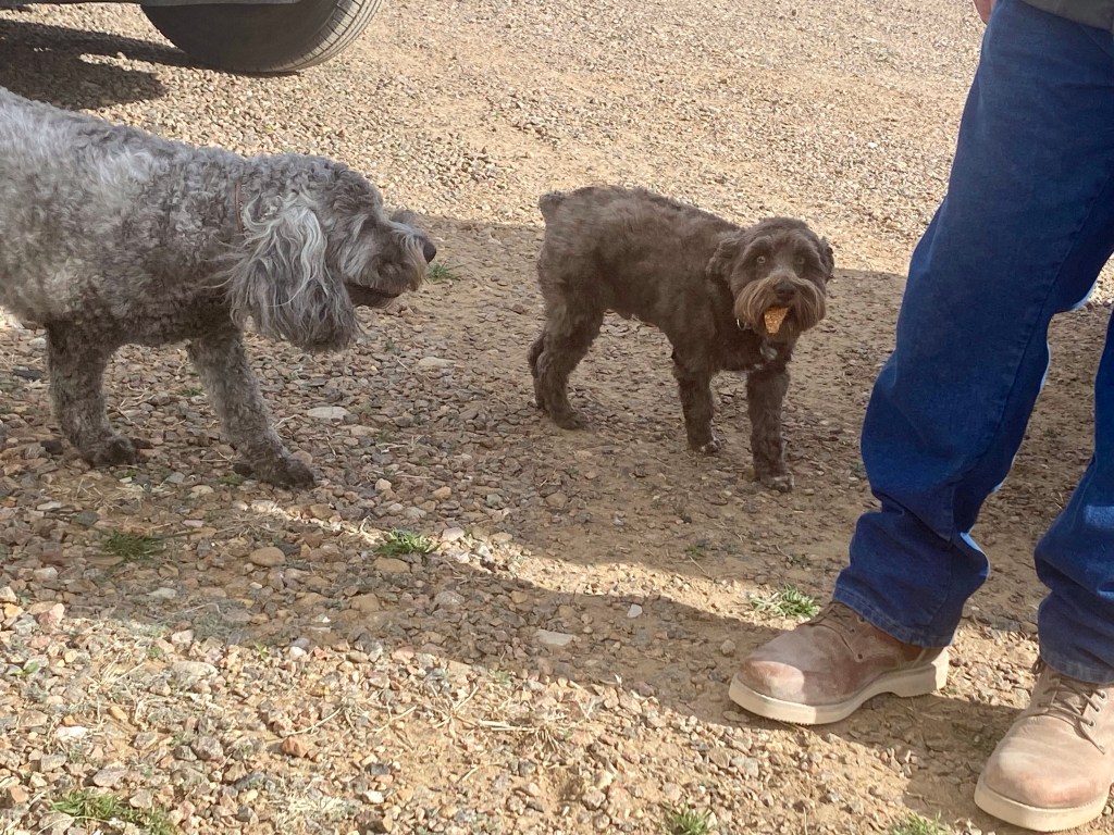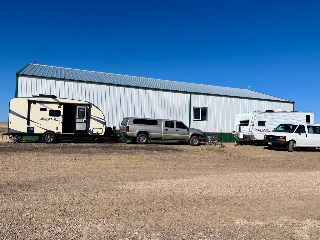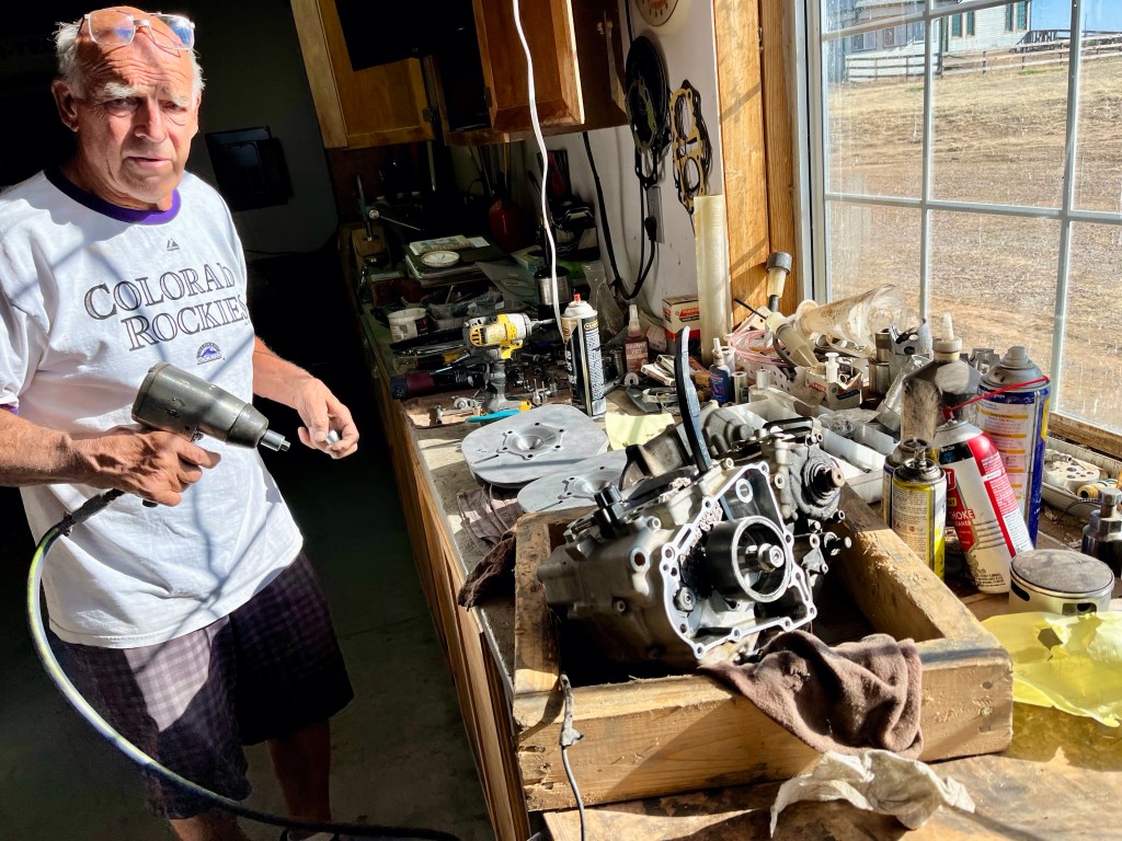 Mooch-docking at our best friend and brother in Christ, Bruce’s ranch on the east side of Denver Colorado…This is Cash and Brodie. Dogs love us…125 Twin…A visit with Bruce is always a learning experience for me…It seems, for some unknown reason, we cannot visit Bruce without picking up yet another dirt bike!!!