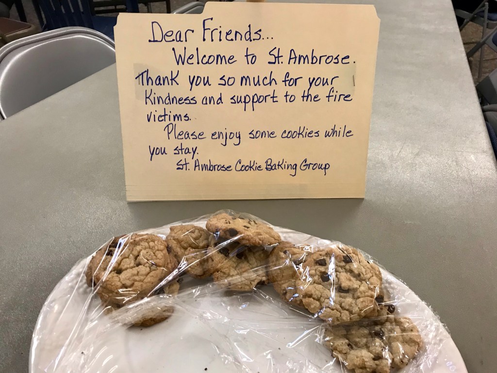 Shout out to Saint Ambrose Episcopal Church for housing DR Teams from Nebraska/Kansas, Texas and Us, Team Arizona. There are 19 of us and they have been very gracious…No work for us today, freezing rain, ice and cold temperatures. Still managed to get a lot of housekeeping done. Team Arizona had the privilege to offer devotions for the evening…