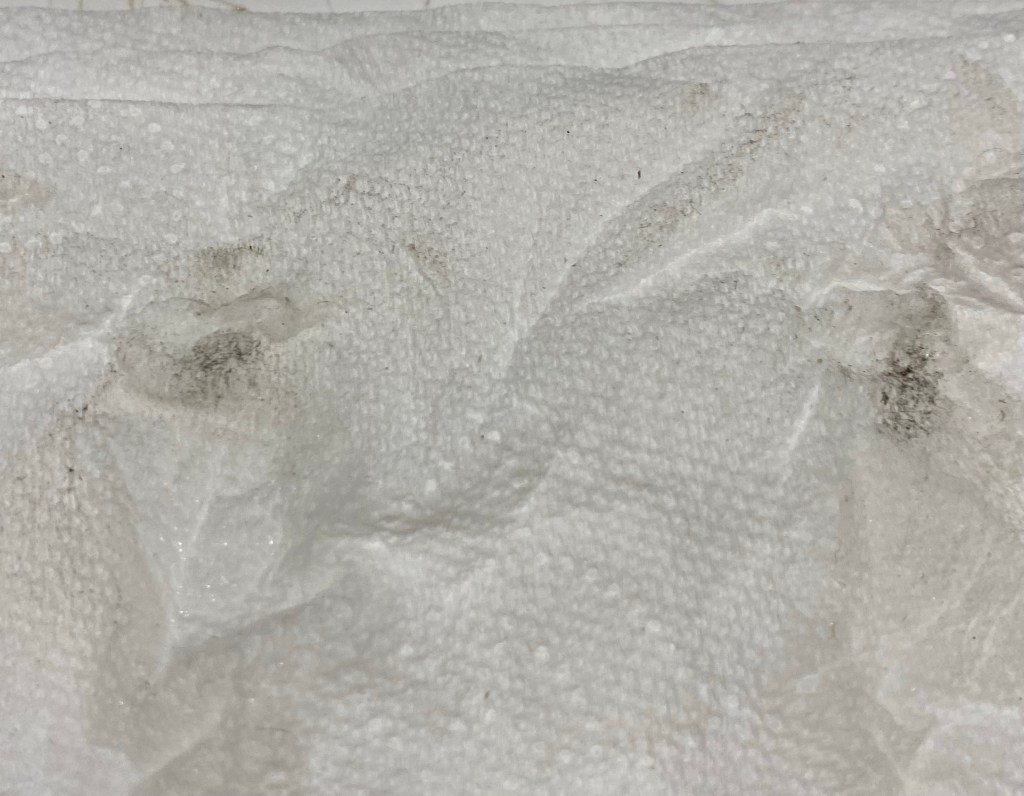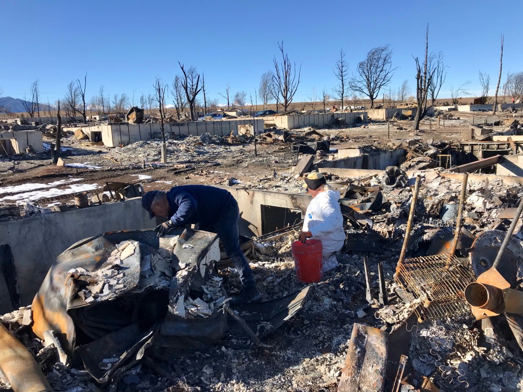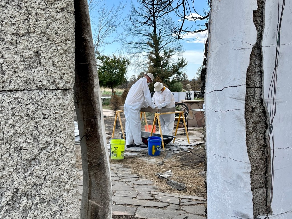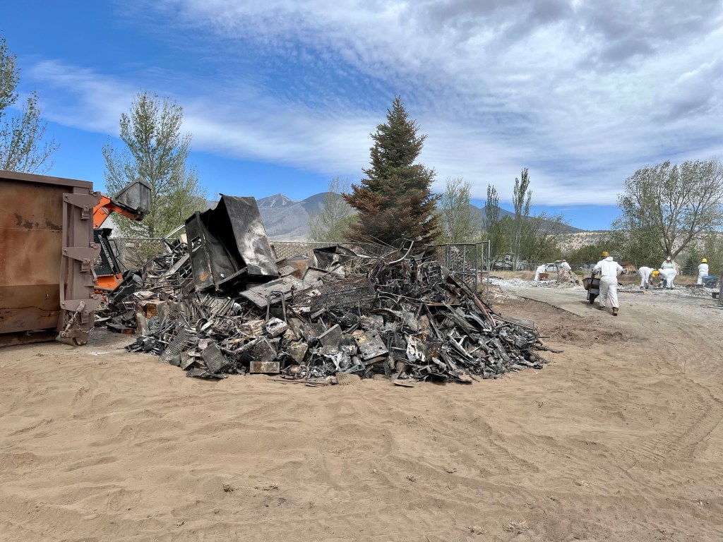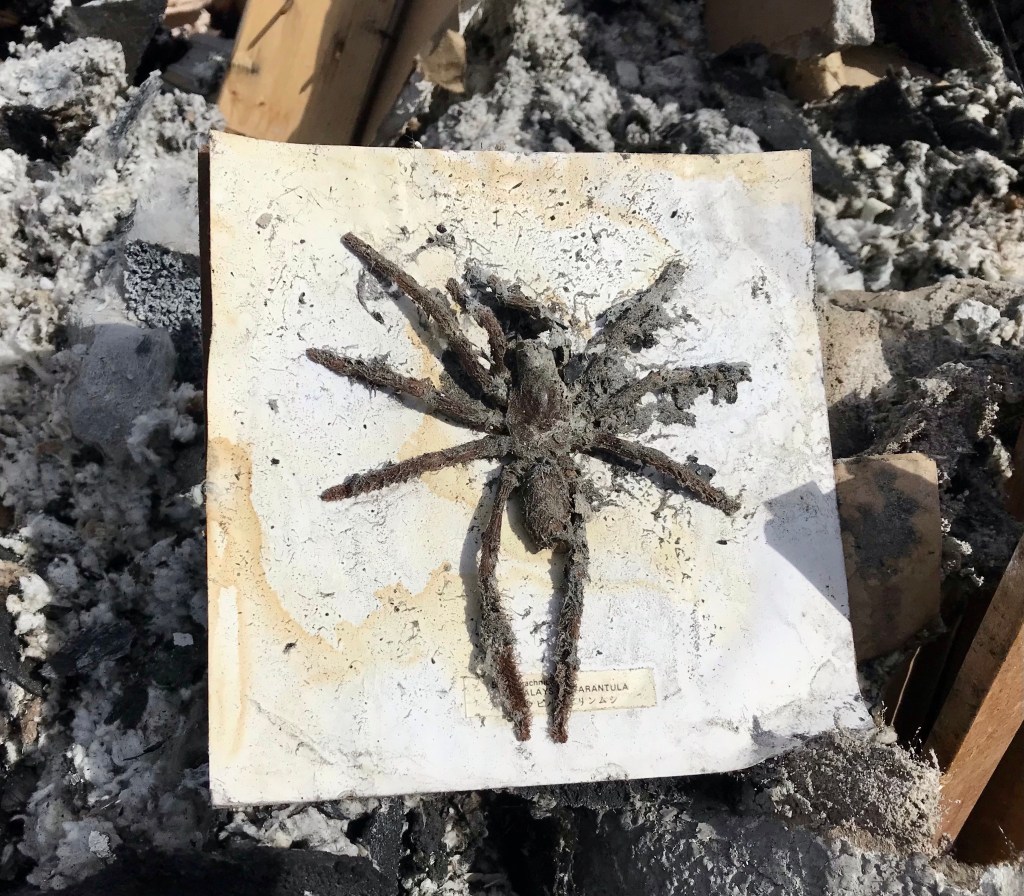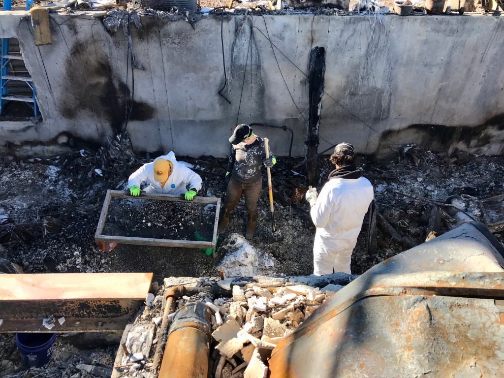 This is Alan and Brenda from Flagstaff. Long time Disaster Relief volunteers, they stopped by to give us a hand, sifting through the rubble…DR Patty adds to the growing finds from the home…Norm, in her happy place. Searching for something of value to the property owners. She did really well today, finding a prized necklace…Necklace find…I hesitate to display this photo. This comes from the inside of a nose, that has been in the confines of a state of the art N95 mask! If you still wear a mask, thinking you are safe, here’s your proof. N equals one experiment. If this mask cannot keep ash from you, it’s not keeping a much smaller particle illness from you…