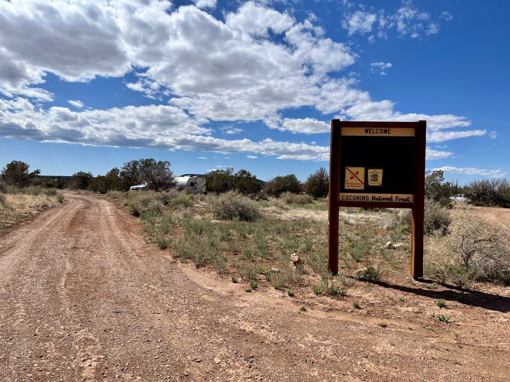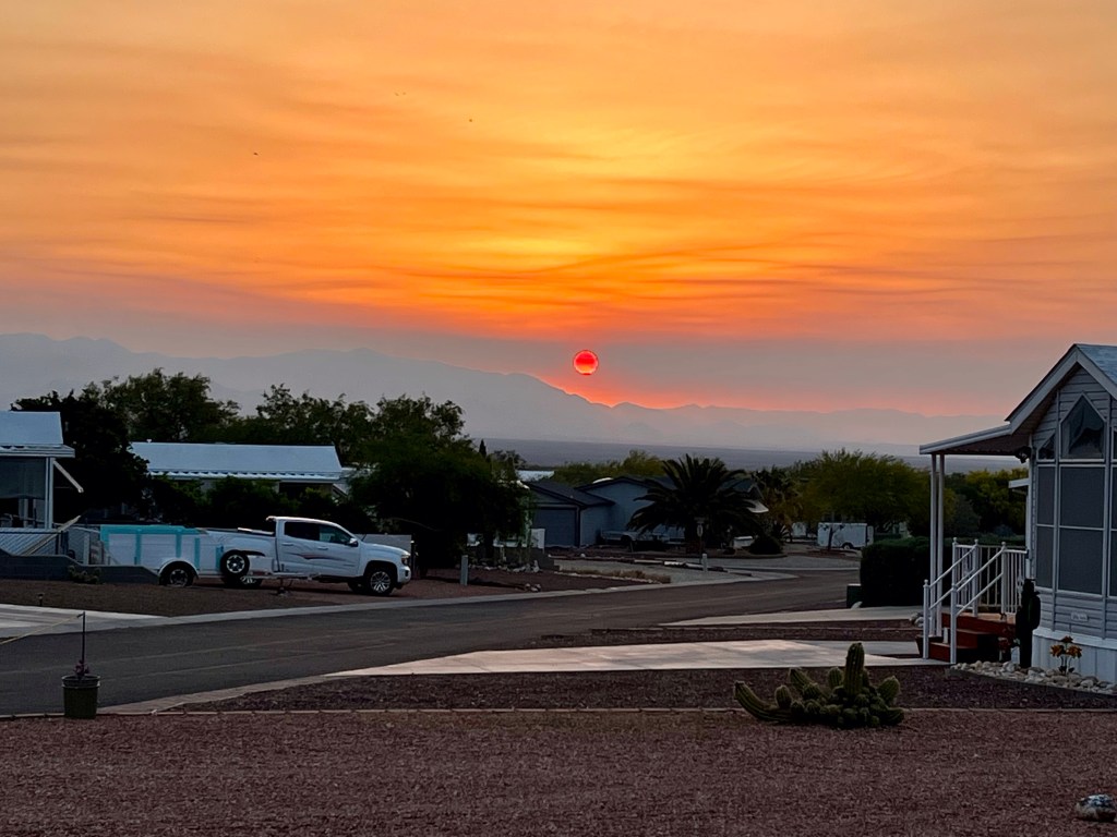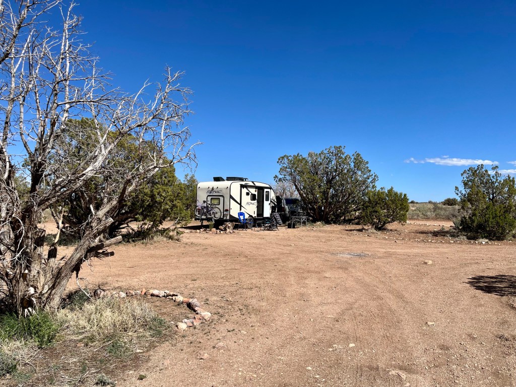 Jack’s Canyon National Forrest campground south of Winslow Arizona. Well off the main road, and very quiet…Cold night ahead…Inside the camper, the next morning….Our welcome home sunrise…