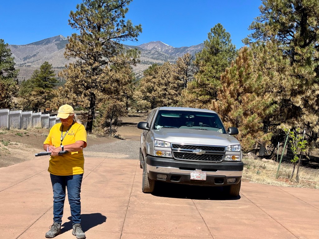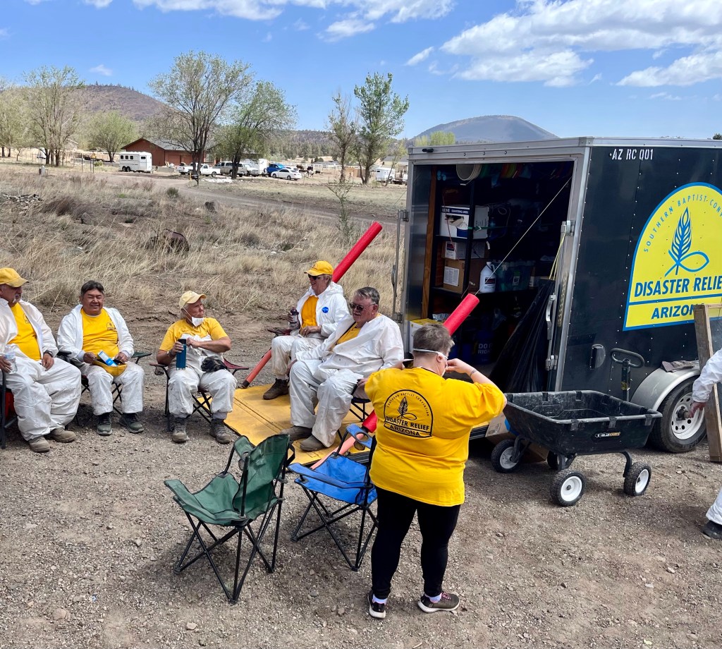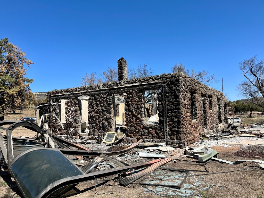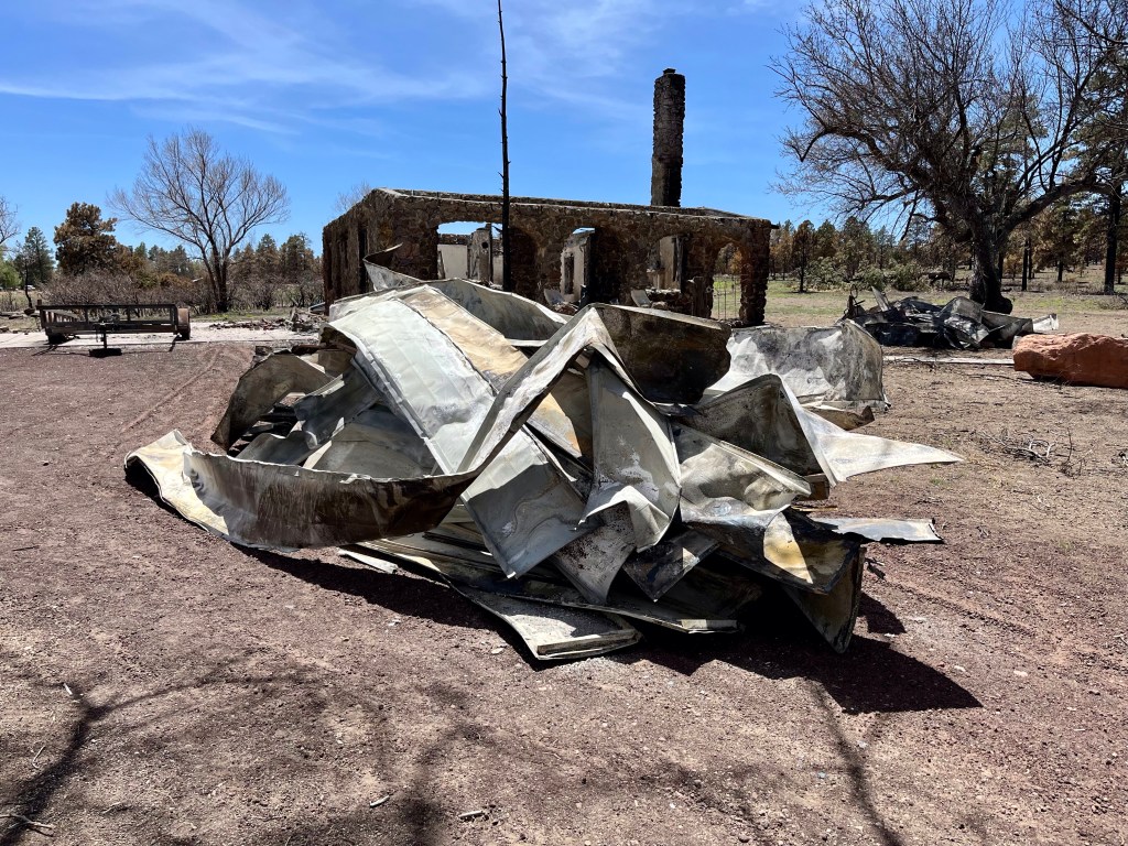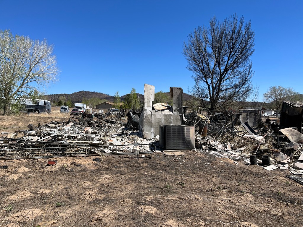 Yesterday we had the blessing of attending church service here at FSBC Flagstaff. This is a fantastic church that prayed for us numerous times yesterday. Norm, doing what Norm does…The quiet time of any call out- chow time…This was a family home of 33 years…Mr. Wells is holding up the remains of his 2001 Plymouth Prowler, built with an aluminum chassis. This family lost their house, the oldest pole barn in Arizona, several classic cars and a few motorcycles. Mr. Wells is retired military and a Vietnam Veteran. It was a pleasure to meet and talk with him…