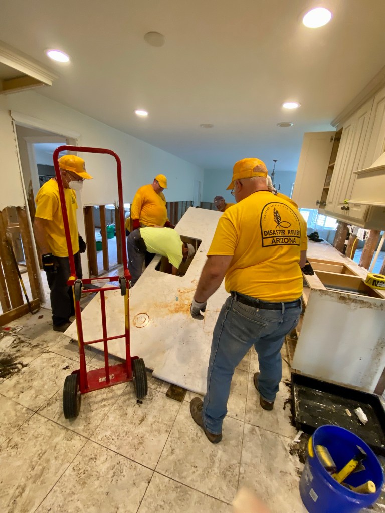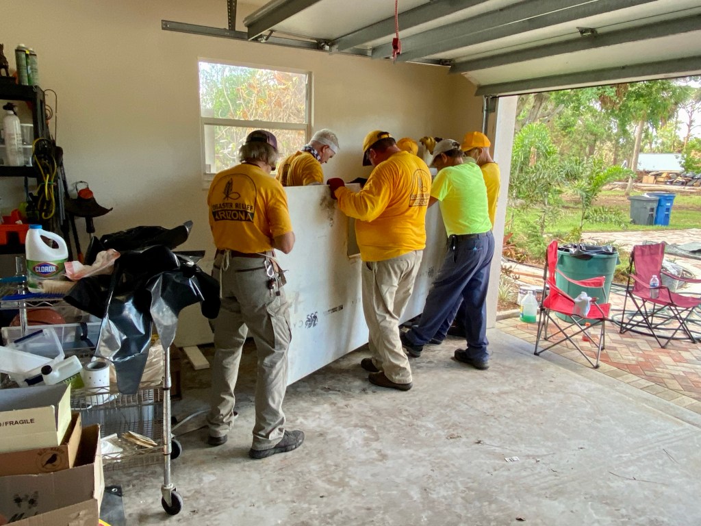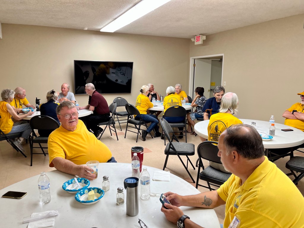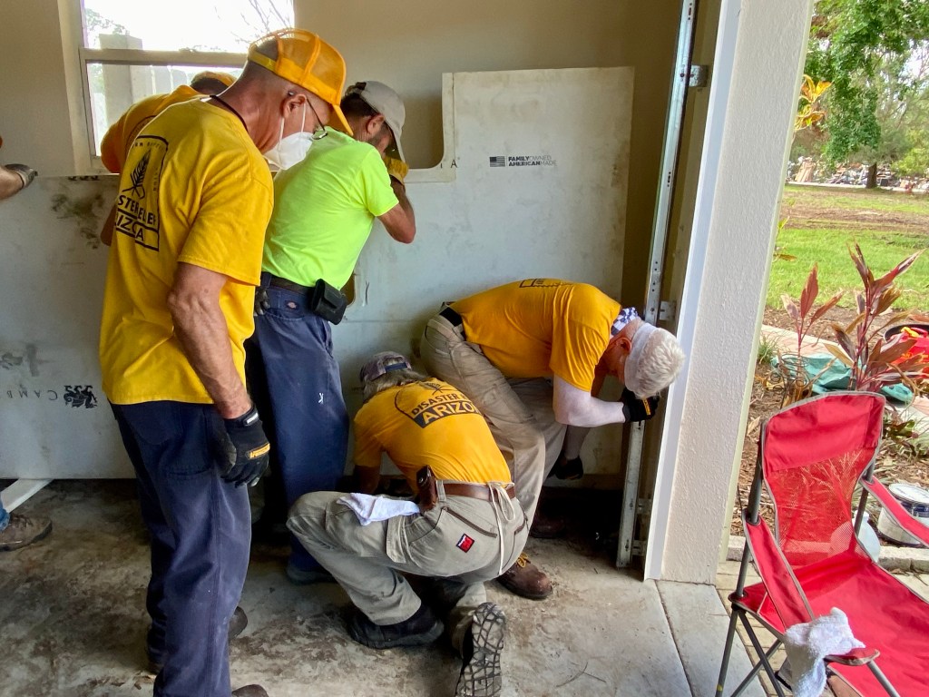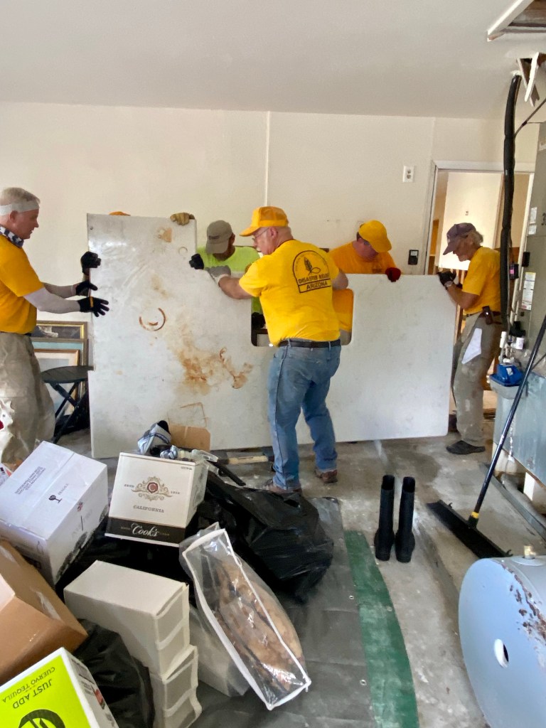 A dinner at DR…We spent a lot of time waiting on properties to work on…Sad, but this property was unsafe for us to work on…Team Arizona worked this property, our first…One of our Chaplains, Sue, presented a signed Bible to the property owner, Rob. It was a real blessing to meet Rob and his wife Ana…
