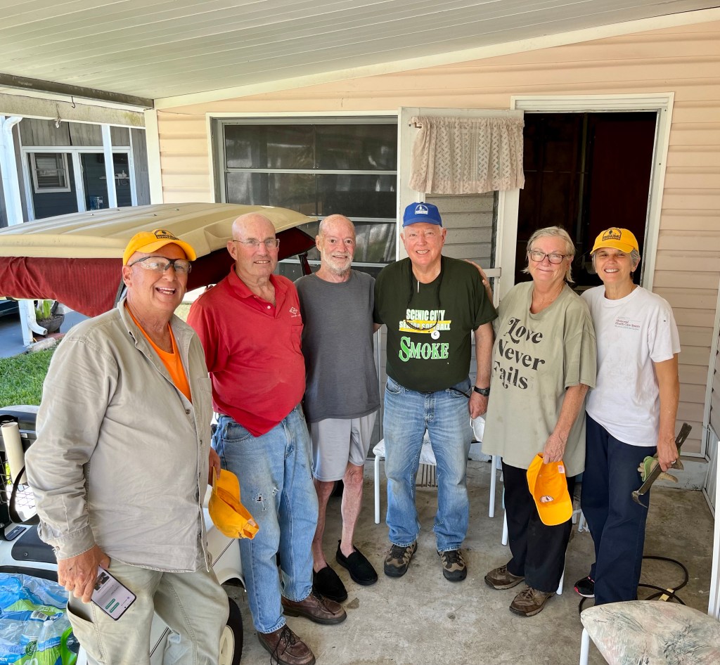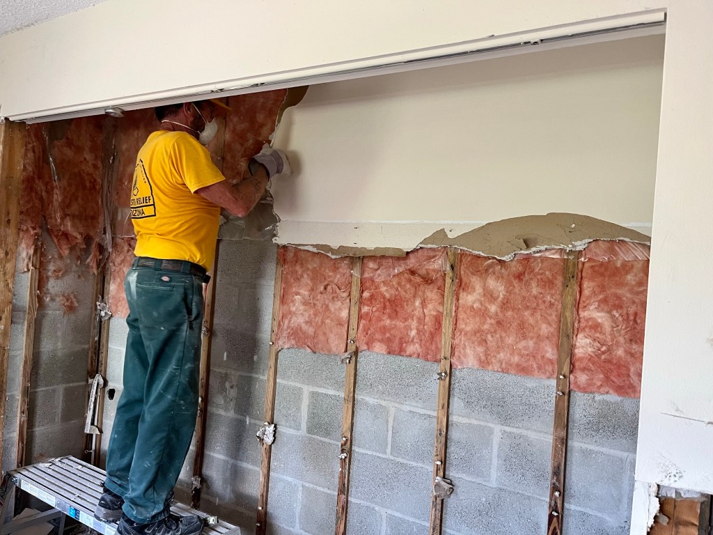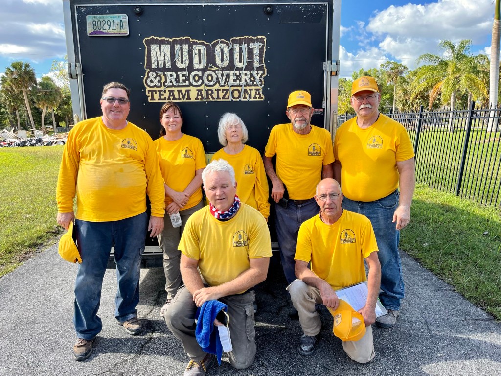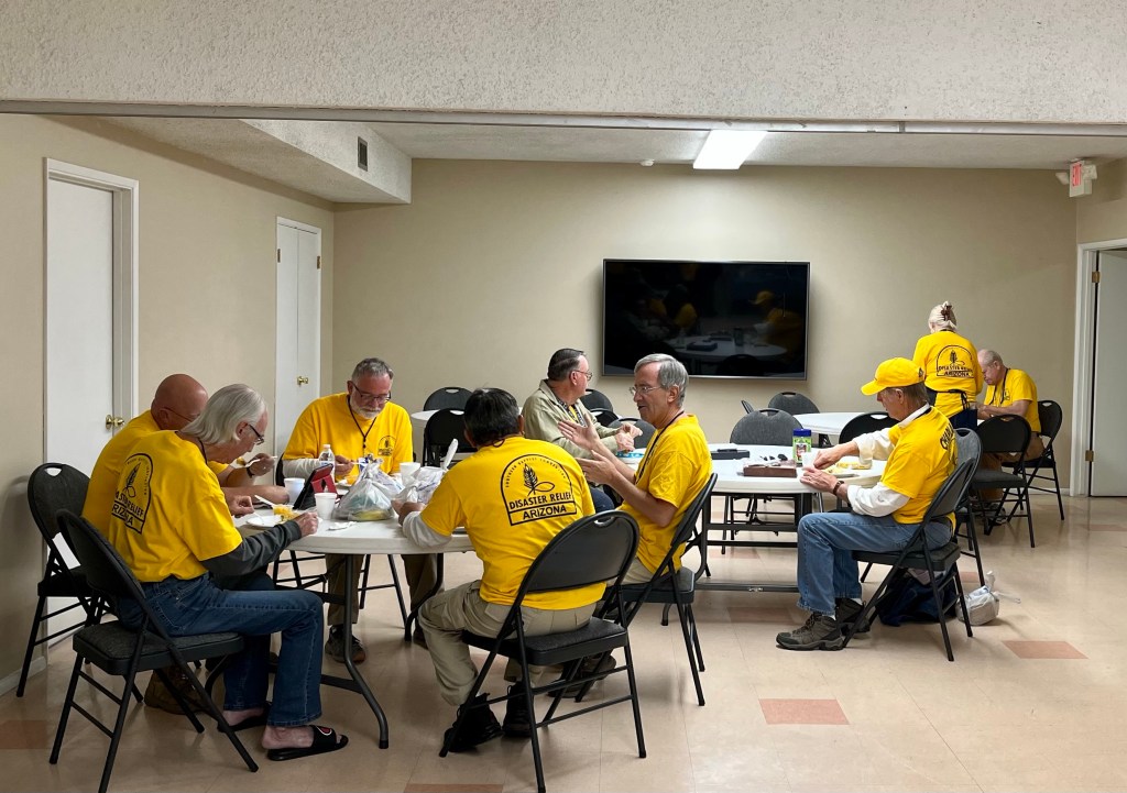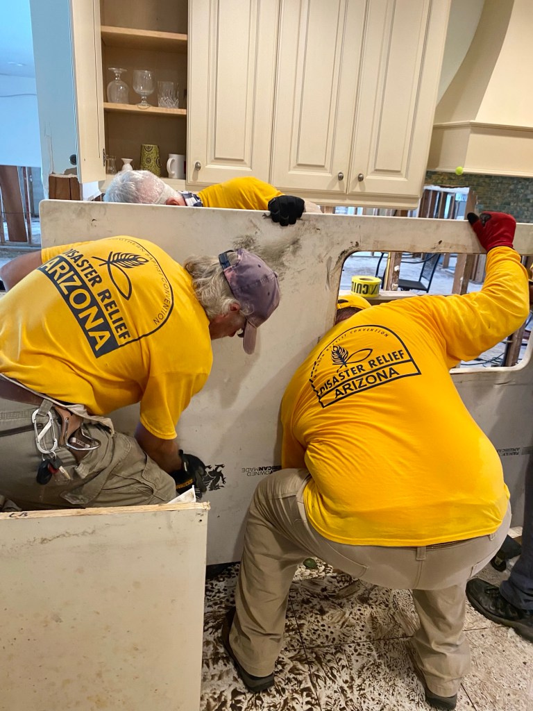 A dinner at DR…We spent a lot of time waiting on properties to work on…Sad, but this property was unsafe for us to work on…Team Arizona worked this property, our first…One of our Chaplains, Sue, presented a signed Bible to the property owner, Rob. It was a real blessing to meet Rob and his wife Ana…