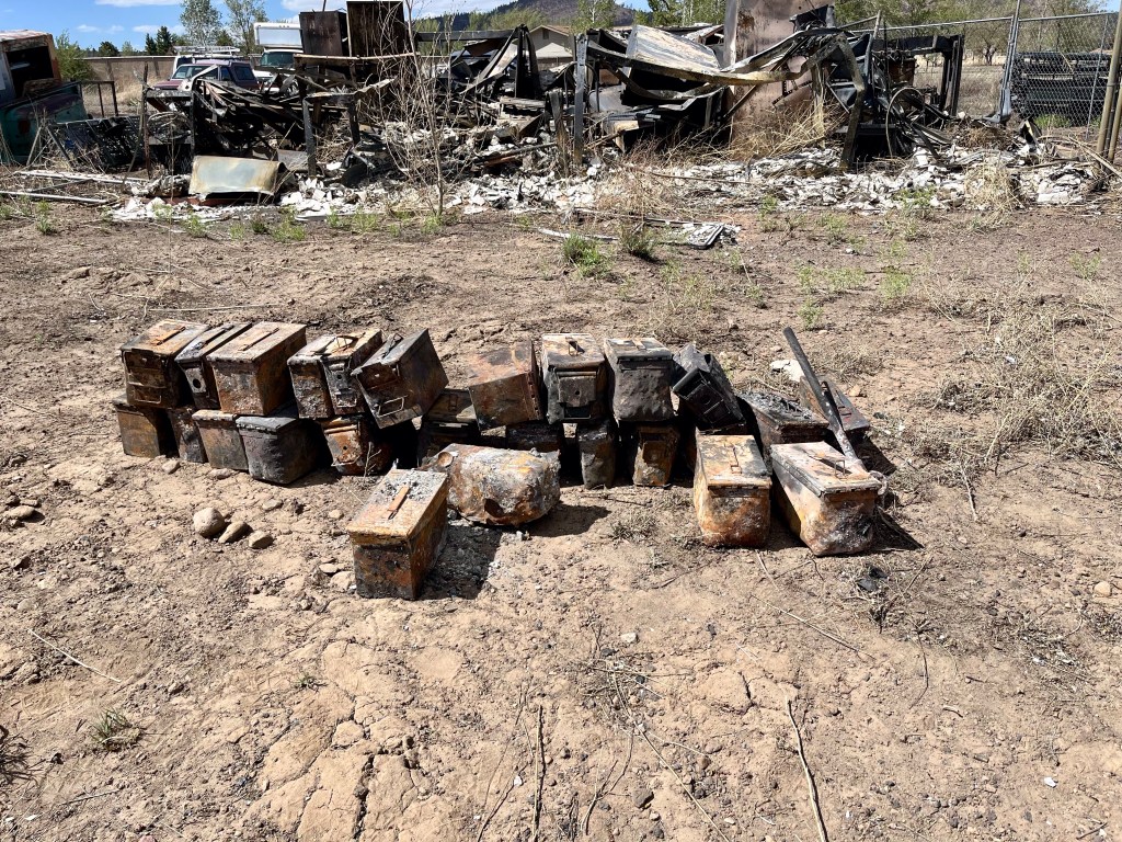 We slapped our magnetic signs on the truck and made our way back to Flagstaff. Back to FBC Flagstaff. Back to dusty, dirty work of ash out recovery. Back to service for the Lord.We started early afternoon, worked for a couple of hours. We found quite a lot of items for such a short time.Due to circumstances beyond our control, we could not search this property on our first trip to the Tunnel Fire.