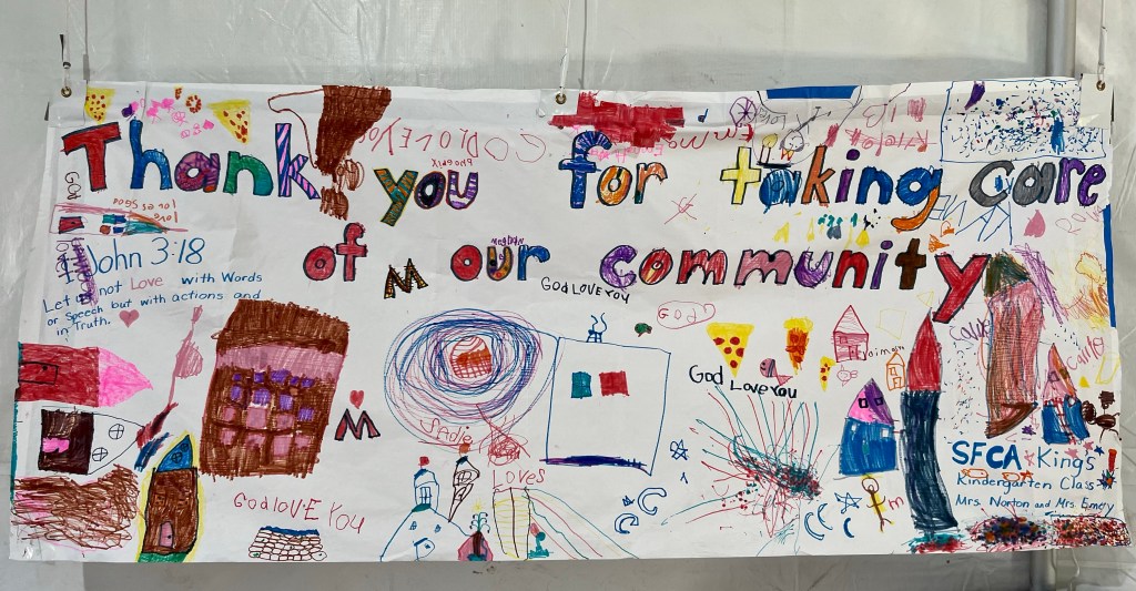 “I wanted to say thank you for reaching out to me and for all you guys are doing for this community. I cannot imagine how many people have been reached for Christ, and have seen a glimpse of his love because of people like you and your husband. Sometimes it takes a hurricane to wake us up to the love of God.”