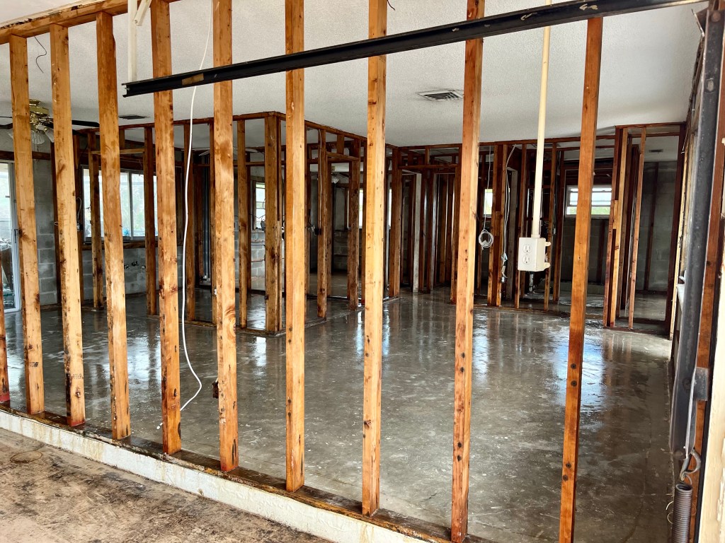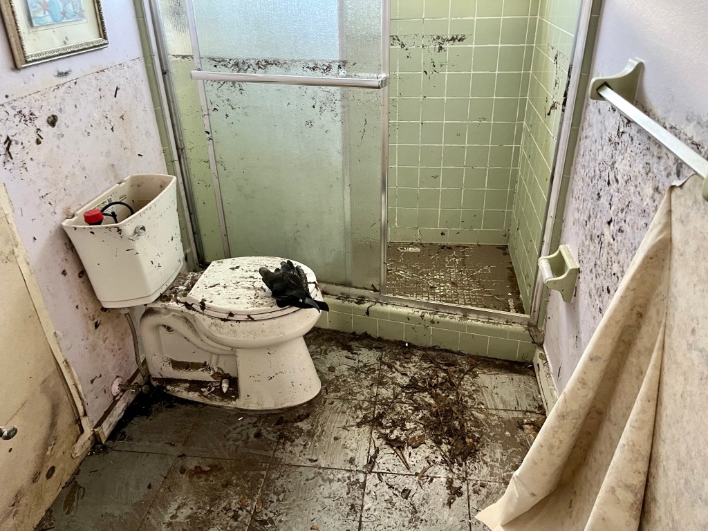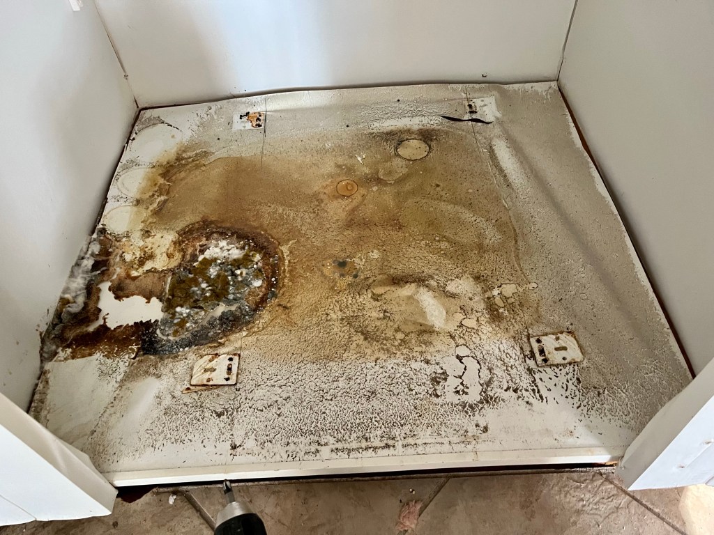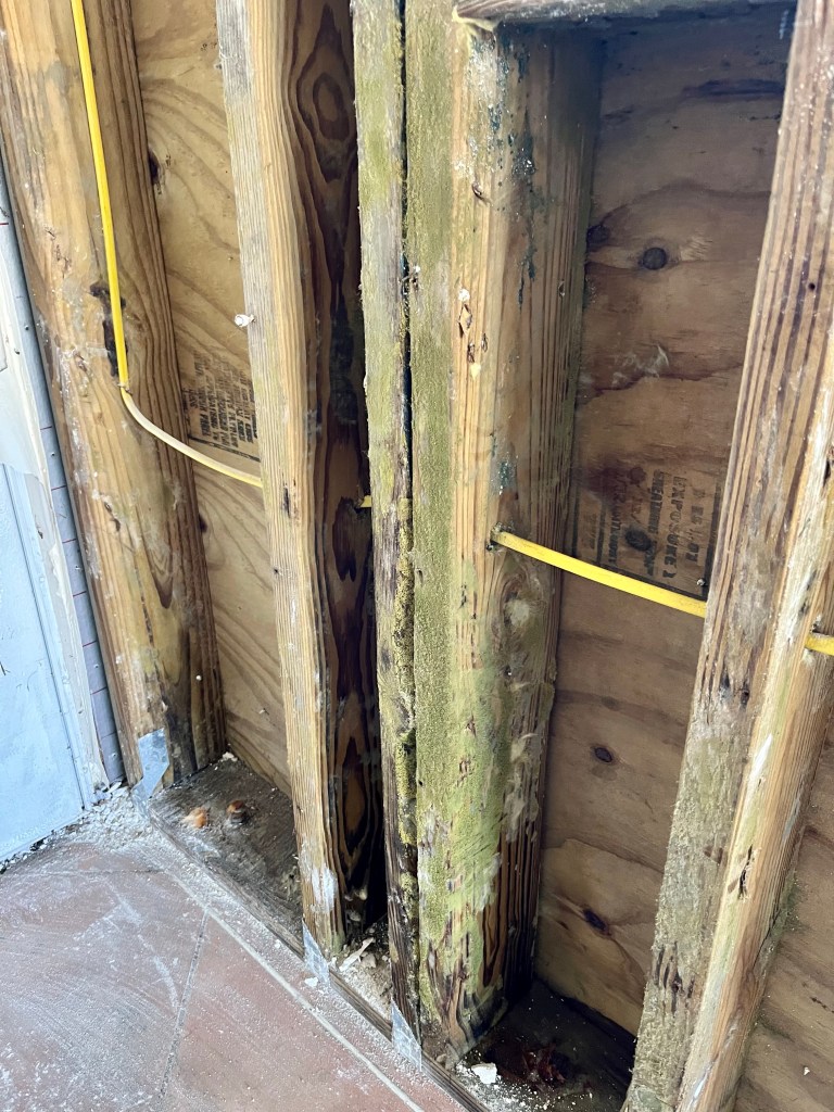 We had to cut 8 foot of drywall in this garage…The side and back yard of the house we are working on….This guy has been freaking out our team for two days now. He goes with that weird clown from day 9…Green mold… This is Deb and Pippi…I worked all afternoon trying to get this cabinet out…
