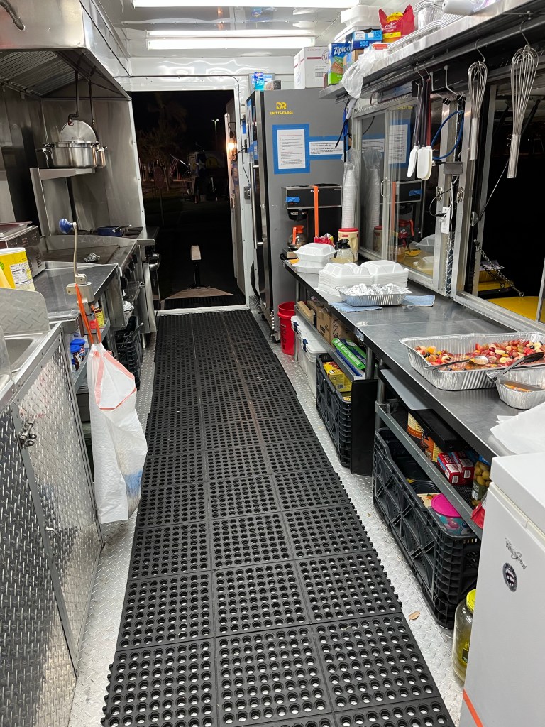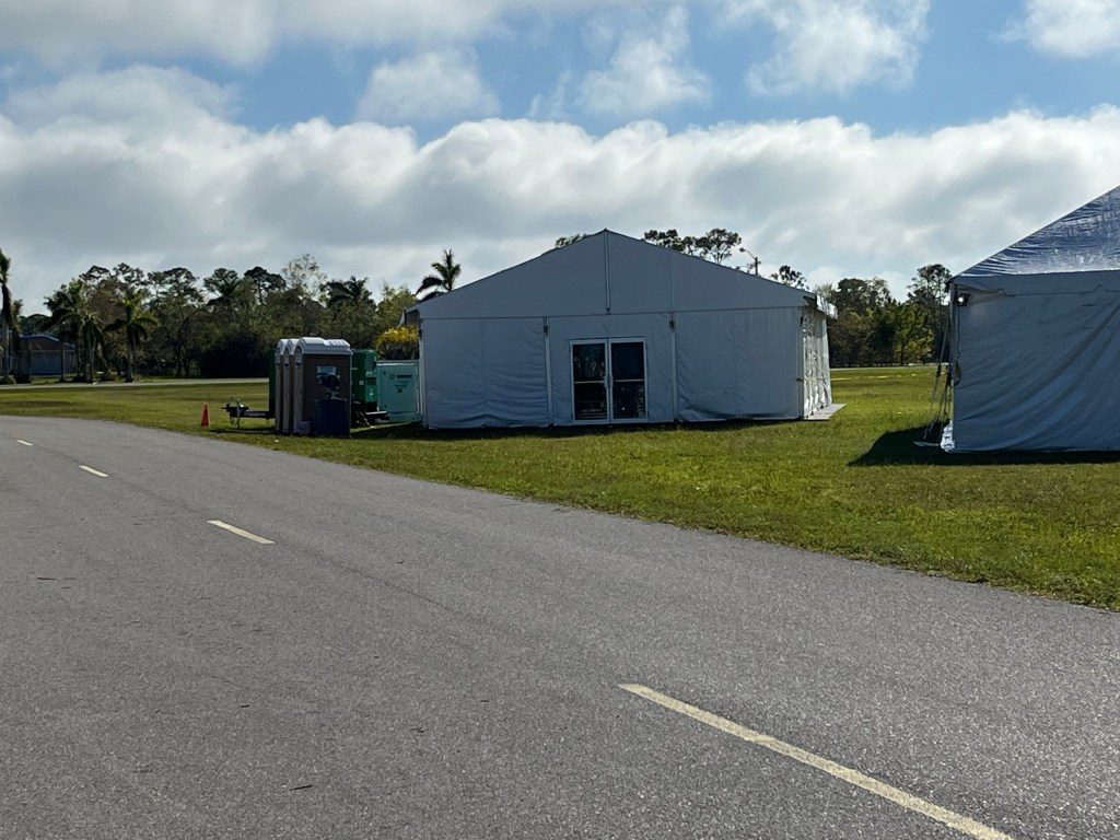 Our last day at FBC Venice. They filled up again…Norm had a ministry appointment in the morning, we packed up that afternoon and headed south to Ft Myers…Our new home church…My new place…Cool wrap on this trailer…Our new dining hall is a tent…Mostly AZDR at this table!!!