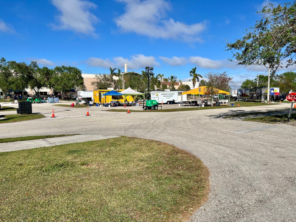 Our welcome to central Florida was gridlock for miles and miles on I75…Two nice looking rigs…Venice Florida sunset. This area is a sea of gold shirts. More than twelve states are on site, well over a 100 men and women wanting to serve the Lord…