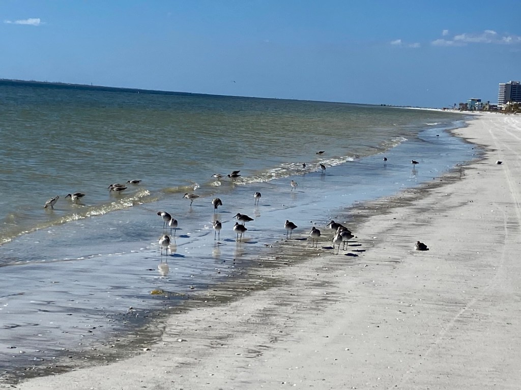 Sunday school is always a good way to start your worship…This church has a pipe organ. We were told that Billy Graham preached his very first sermon in this building!!!A win for the good guys!!!FBC Venice Florida…We took some R&R today and headed to the beach. Last time we were at the Gulf of Mexico was 2017, in the panhandle. Norm and her feathered friends…The best part of the beach is when you close your eyes and listen to the sound of the water…One night I dreamed a dream. I was walking along the beach with my Lord. Across the dark sky flashed scenes from my life. For each scene, I noticed two sets of footprints in the sand, one belonging to me and one to my Lord. When the last scene of my life shot before me I looked back at the footprints in the sand. There was only one set of footprints. I realized that this was at the lowest and saddest times of my life. This always bothered me and I questioned the Lord about my dilemma. “Lord, You told me when I decided to follow You, You would walk and talk with me all the way. But I’m aware that during the most troublesome times of my life there is only one set of footprints. I just don’t understand why, when I need You most, You leave me.” He whispered, “My precious child, I love you and will never leave you, never, ever, during your trials and testings. When you saw only one set of footprints, it was then that I carried you.”